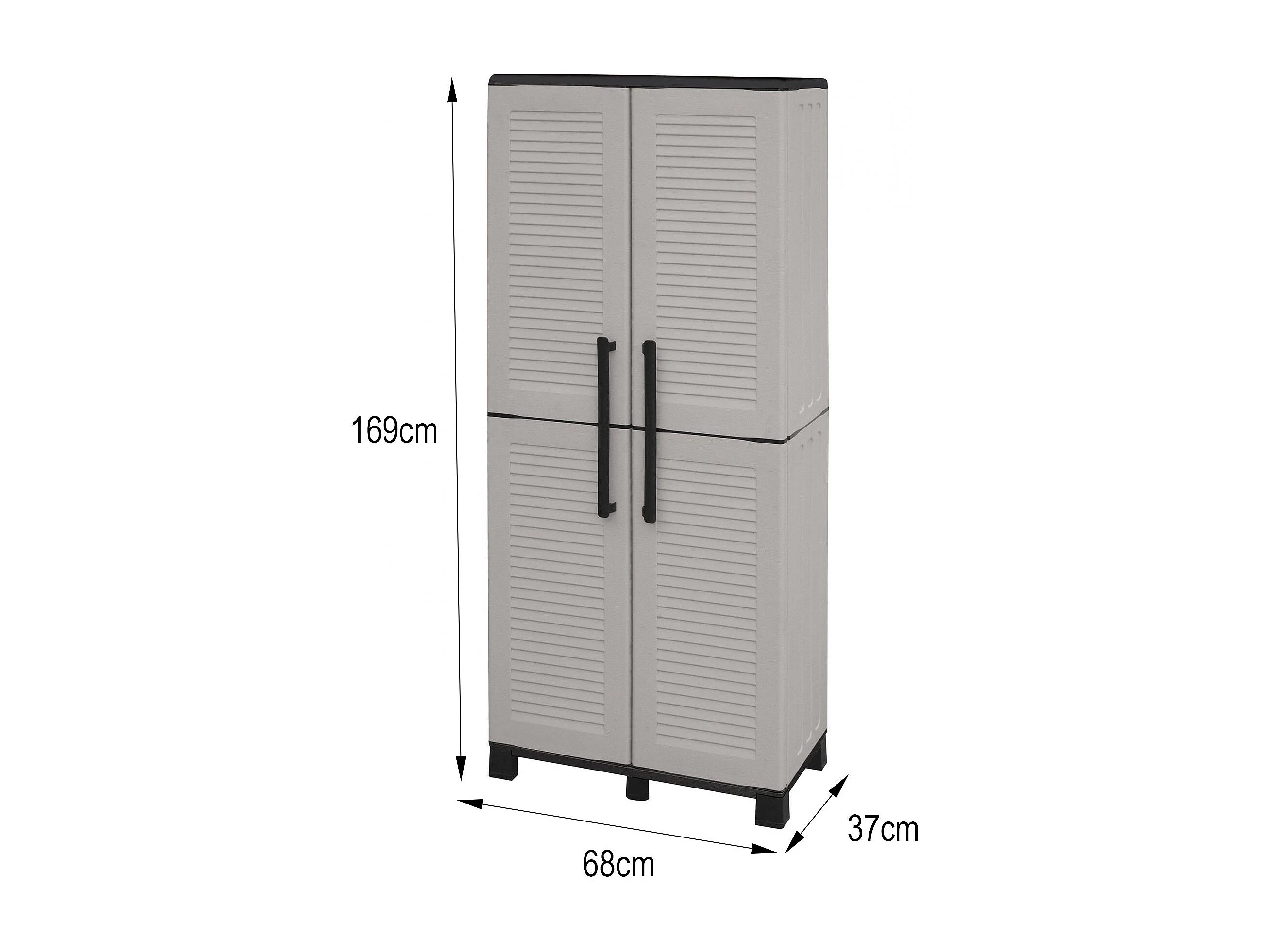 Armoire d'extérieur Veurne, Armoire à balais, Armoire d'extérieur 2 portes, 100% Made in Italy, 68x37h169 cm, Gris clair et noir, Finition rayée
