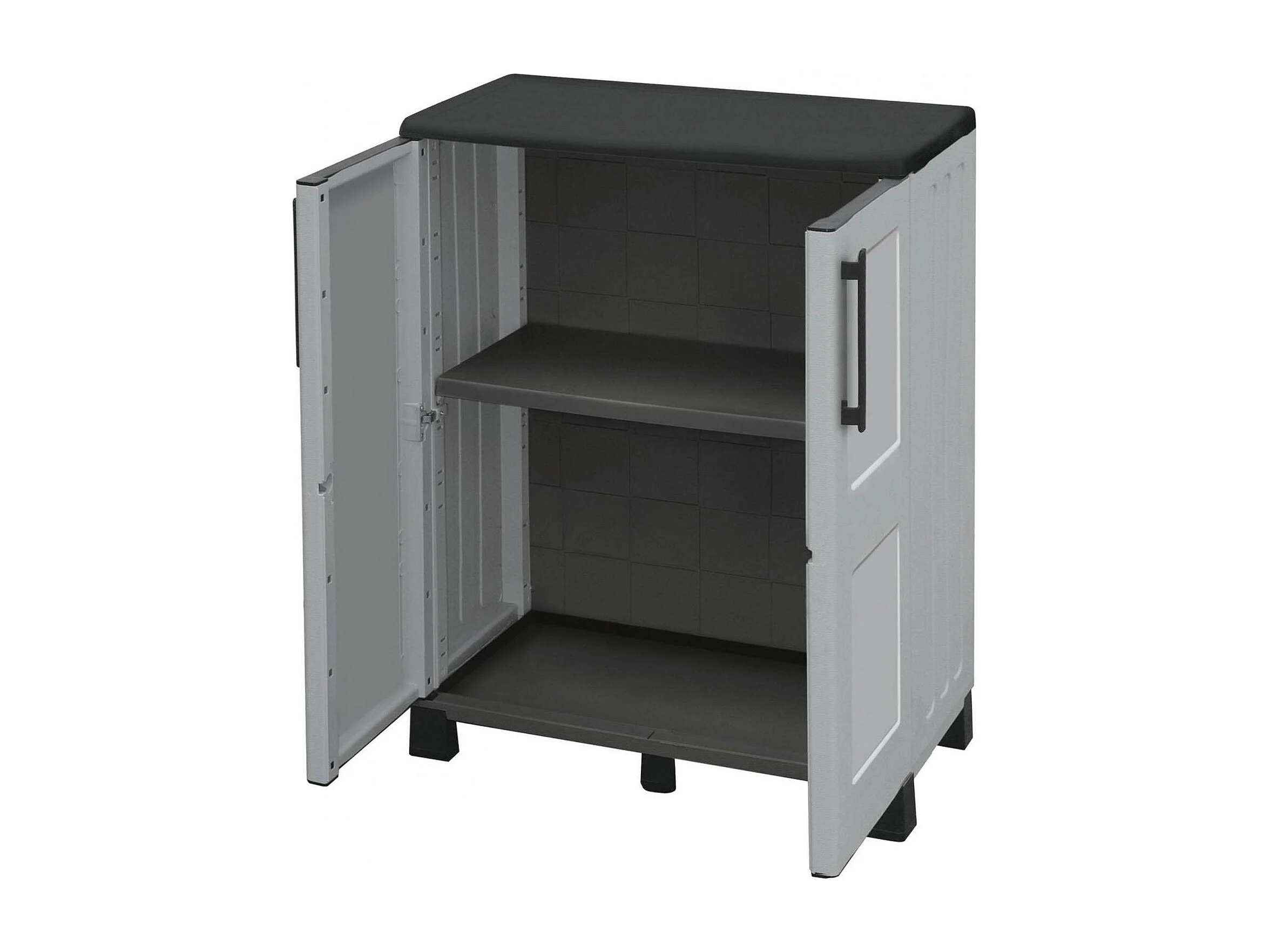 Armoire d'extérieur Wavre, Armoire de balcon polyvalente, Armoire d'extérieur 2 portes, 100% Made in Italy, 68x37h90 cm, Gris clair et noir, Finition à carreaux