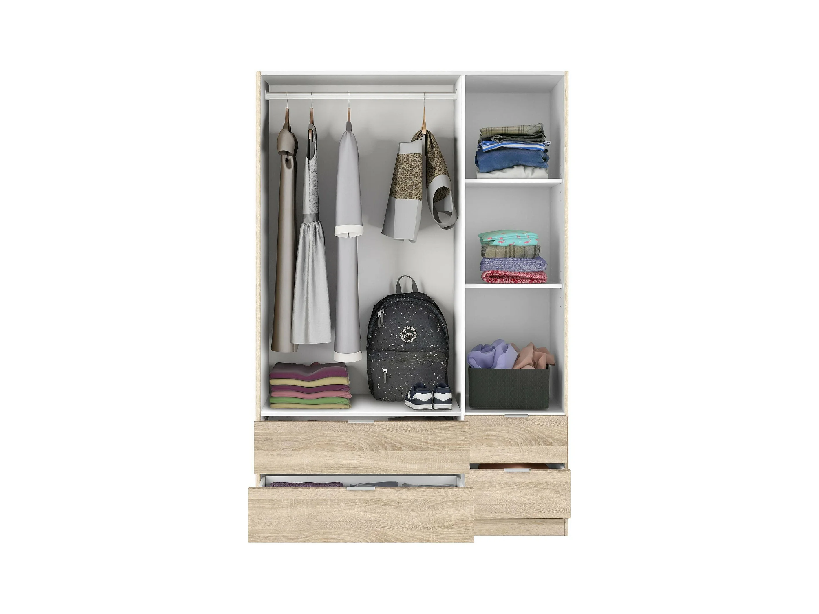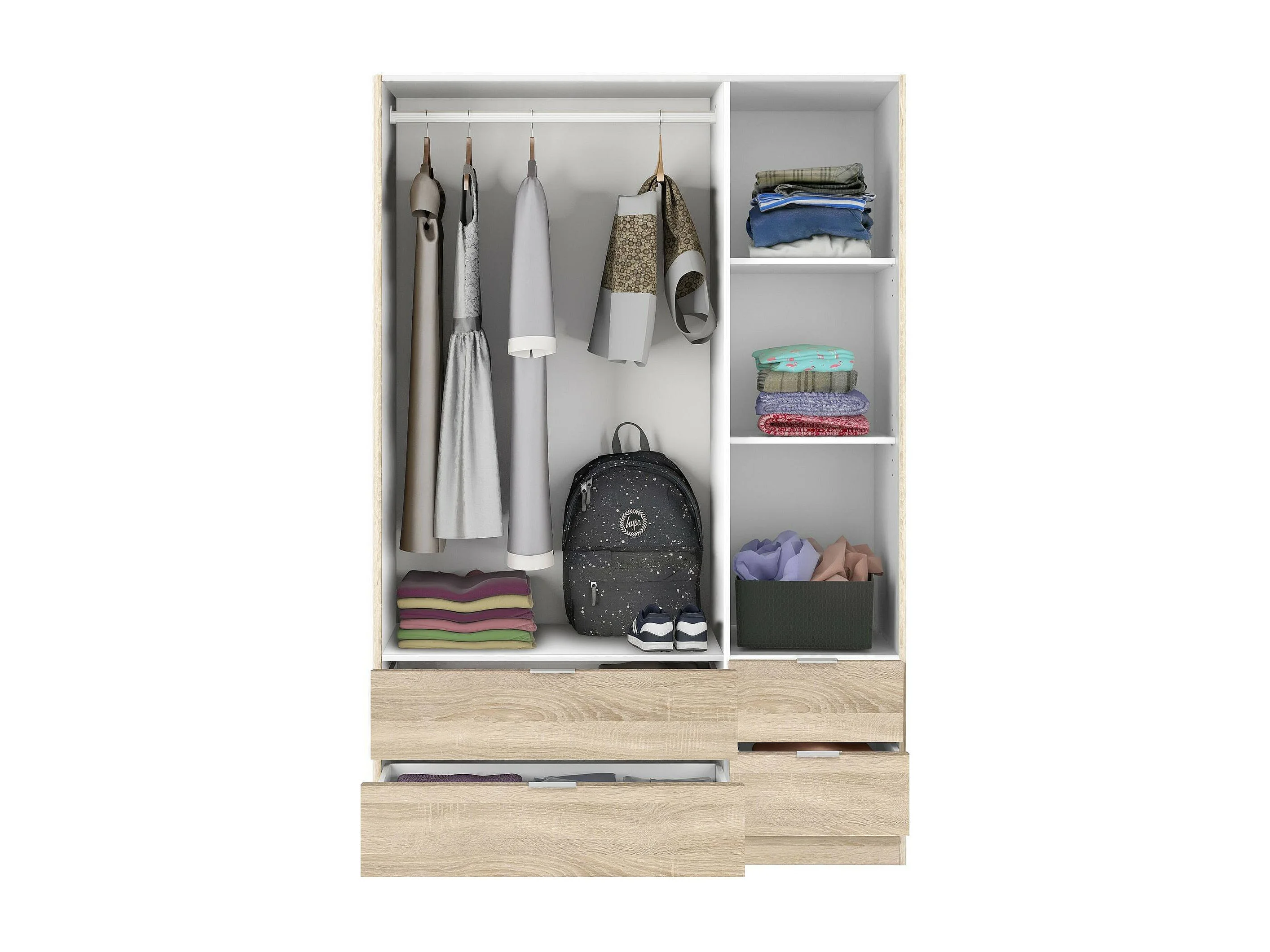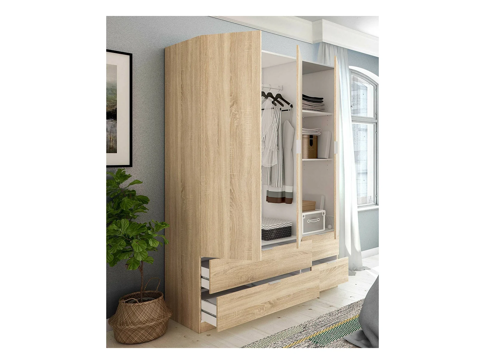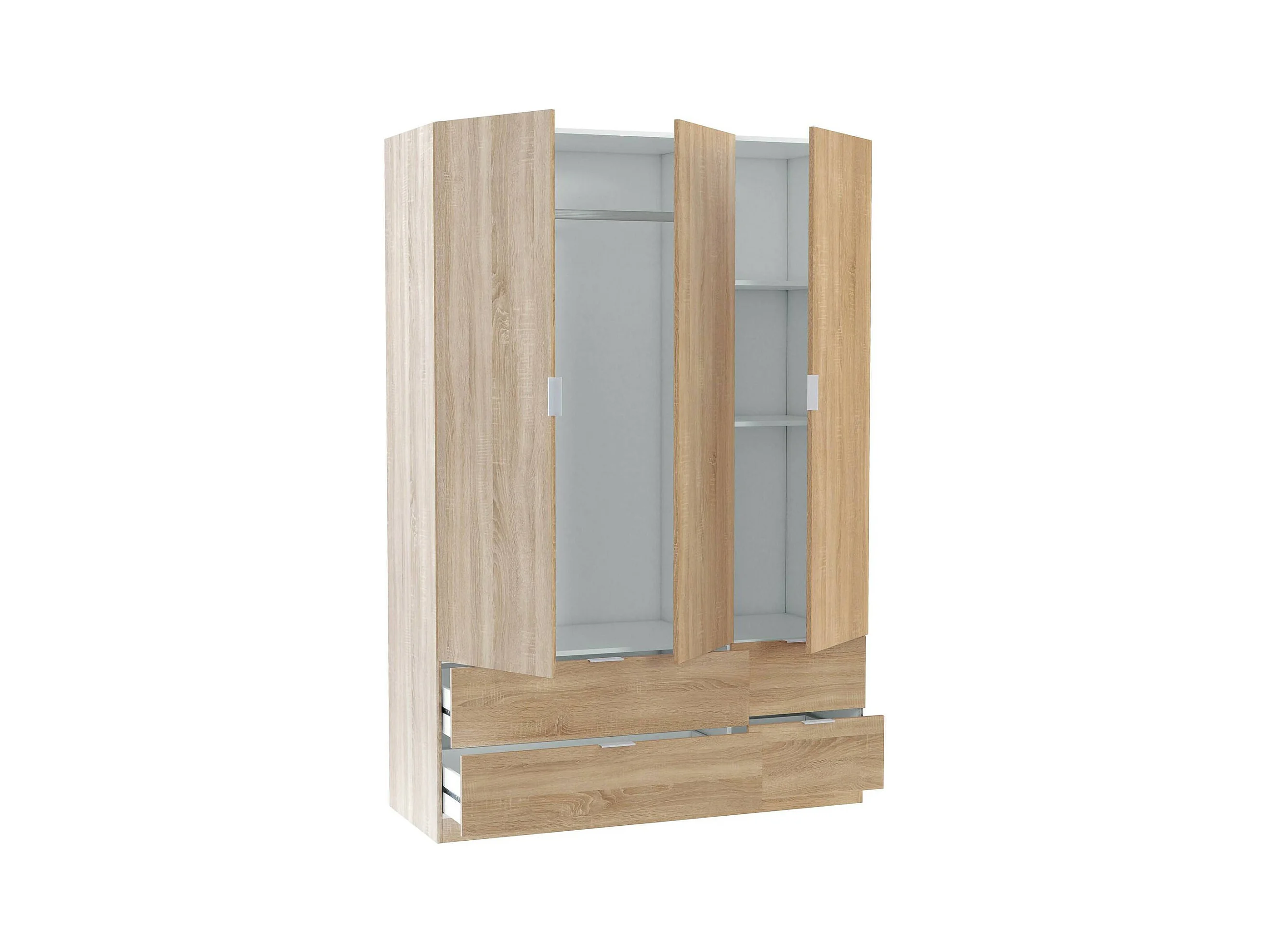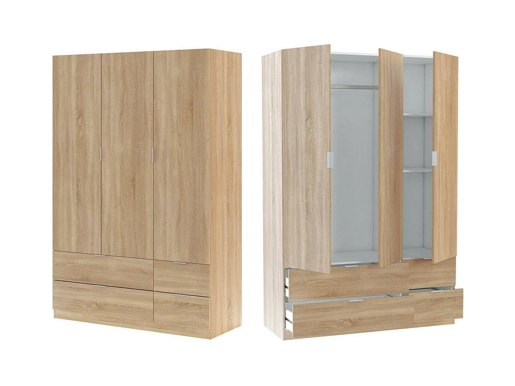 Armoire Dob, Armoire de chambre avec 3 portes et 2 tiroirs, Armoire à vêtements, 135x52h200 cm, Chêne