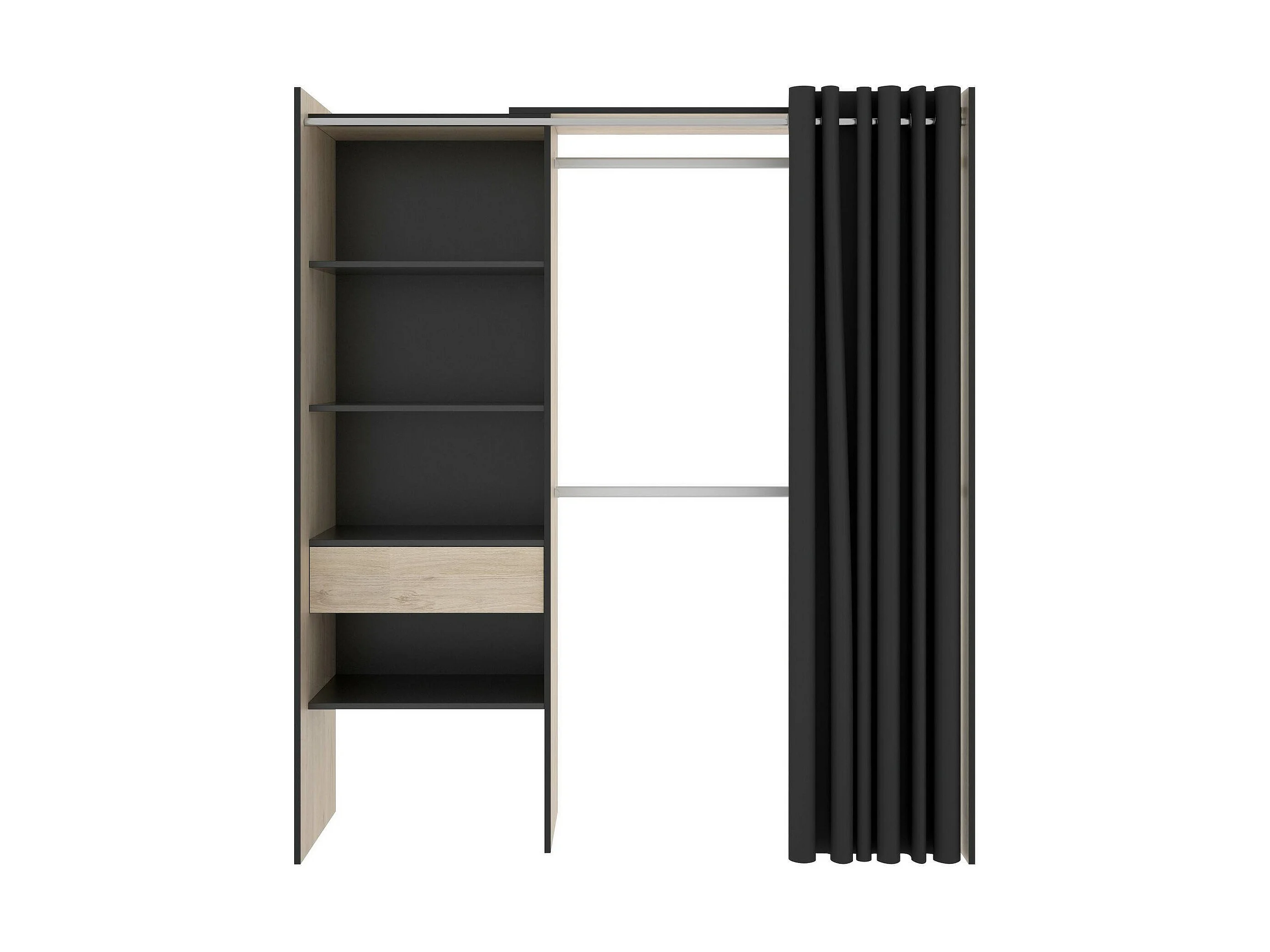 Armoire Dober, Structure pour dressing avec rideau, Cintre ouvert, 160x50h205 cm, Chêne et Anthracite