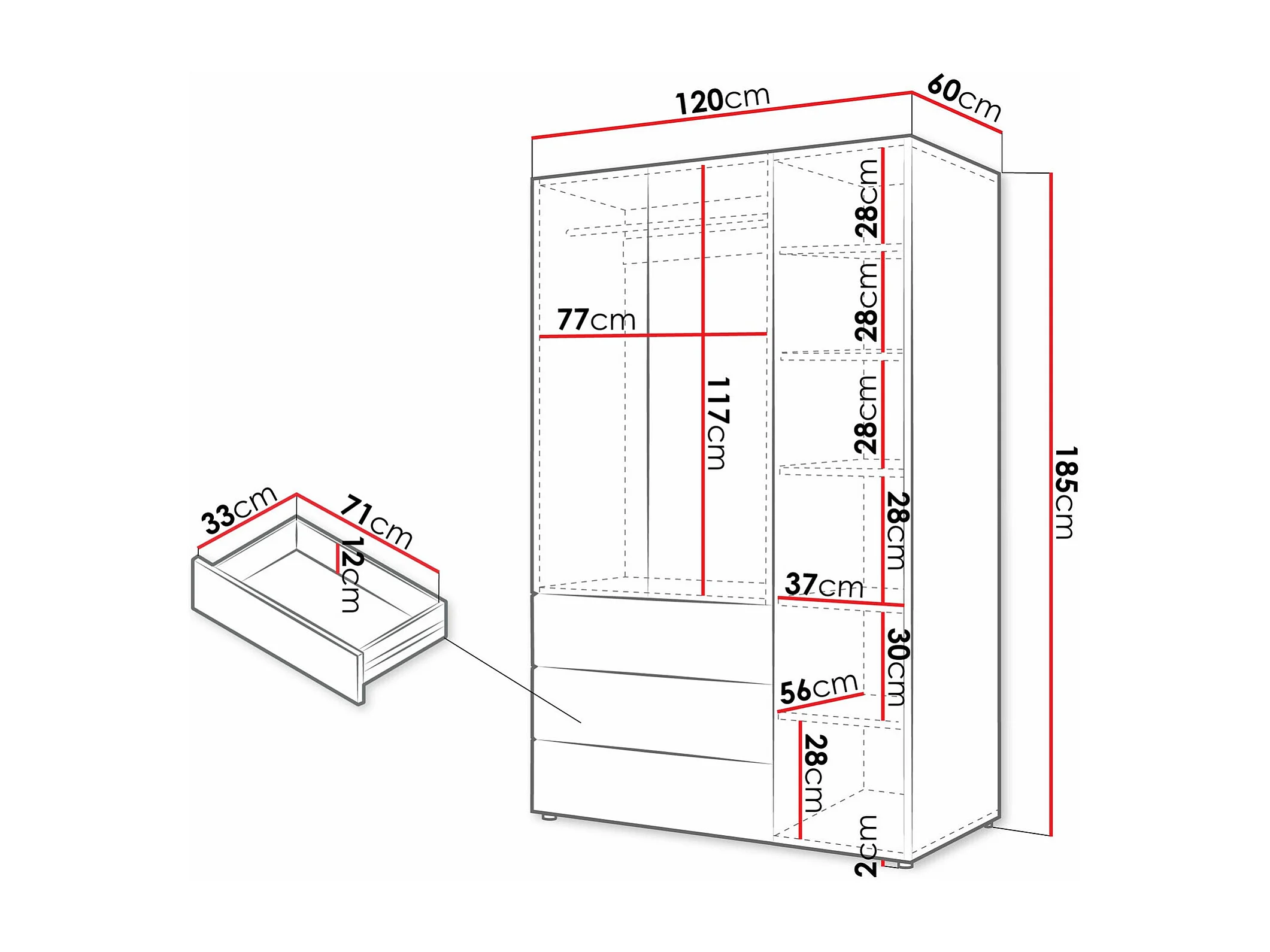 Armoire Domcali 100, Beige|Chêne, 185x120x60cm, Portes d'armoire: Avec des charnières
