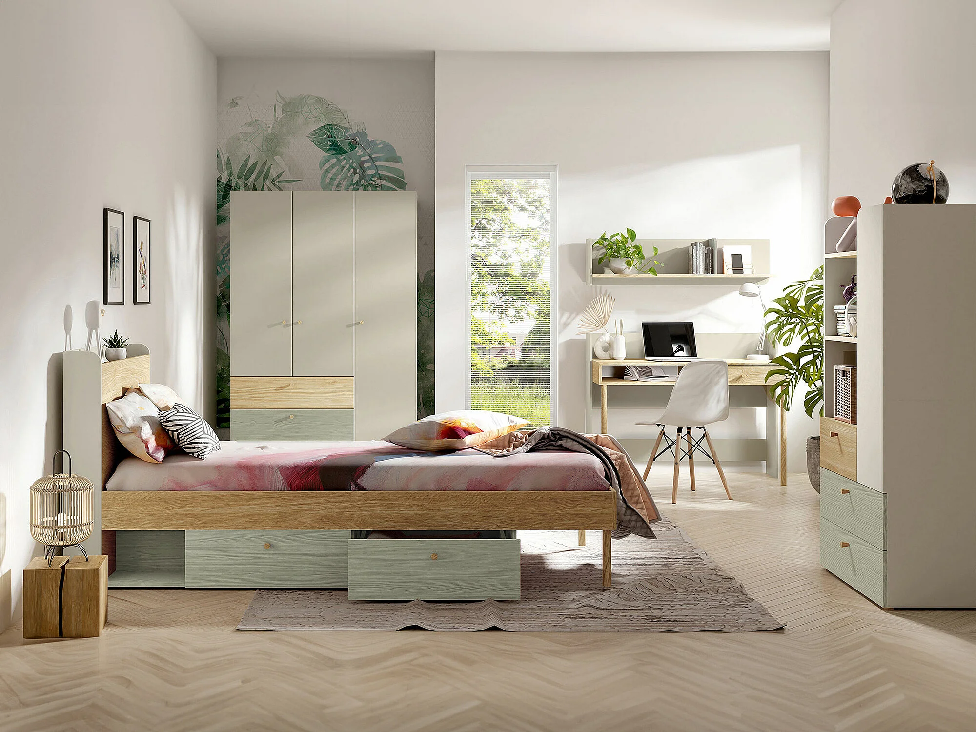 Armoire Domcali 100, Chêne|Gris|Beige, 185x120x60cm