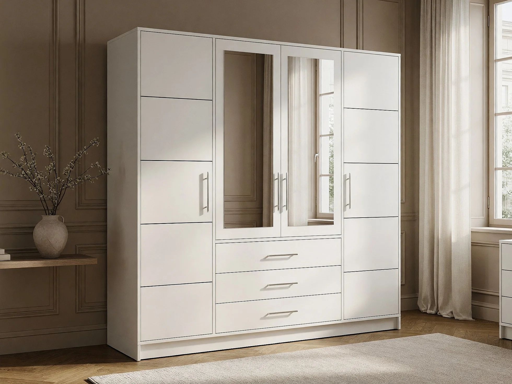 Armoire Dortivu, Argent|Blanc, 200x196x58cm, Portes d'armoire: Avec des charnières