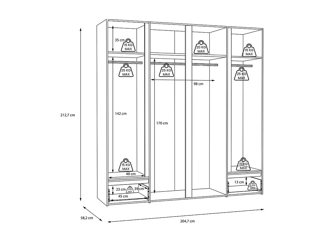 Armoire dressing 204 cm décor bois chêne et blanc avec LED – ILLYA