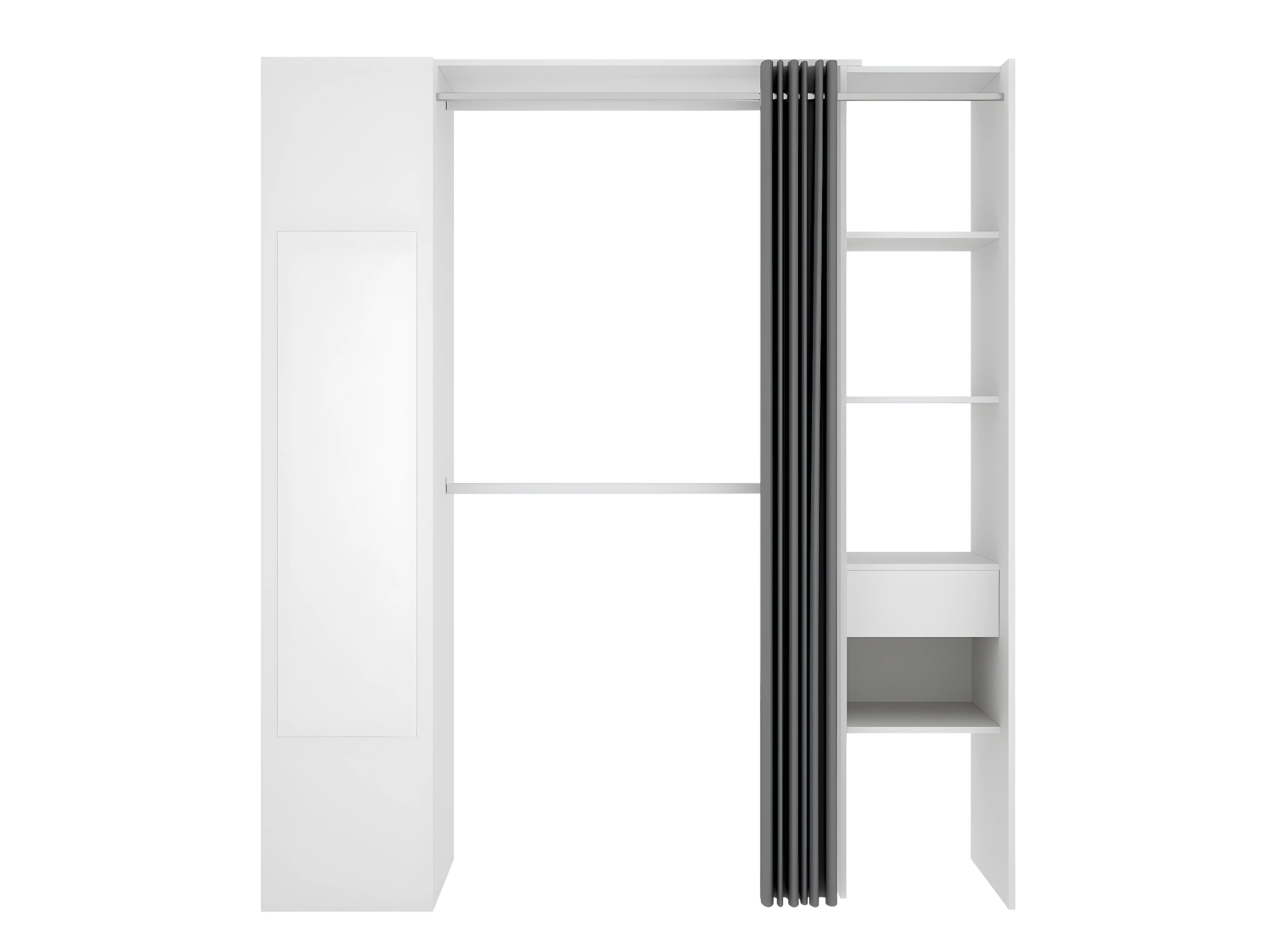 Armoire dressing avec 1 colonne + miroir + rideau coloris blanc - Longueur 177 x Profondeur 52 x Hauteur 205 cm