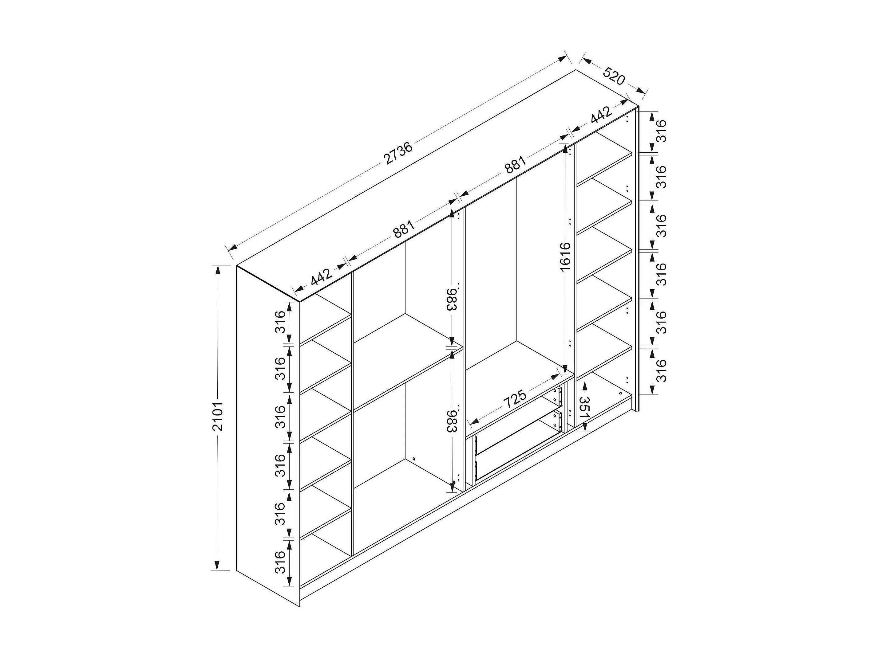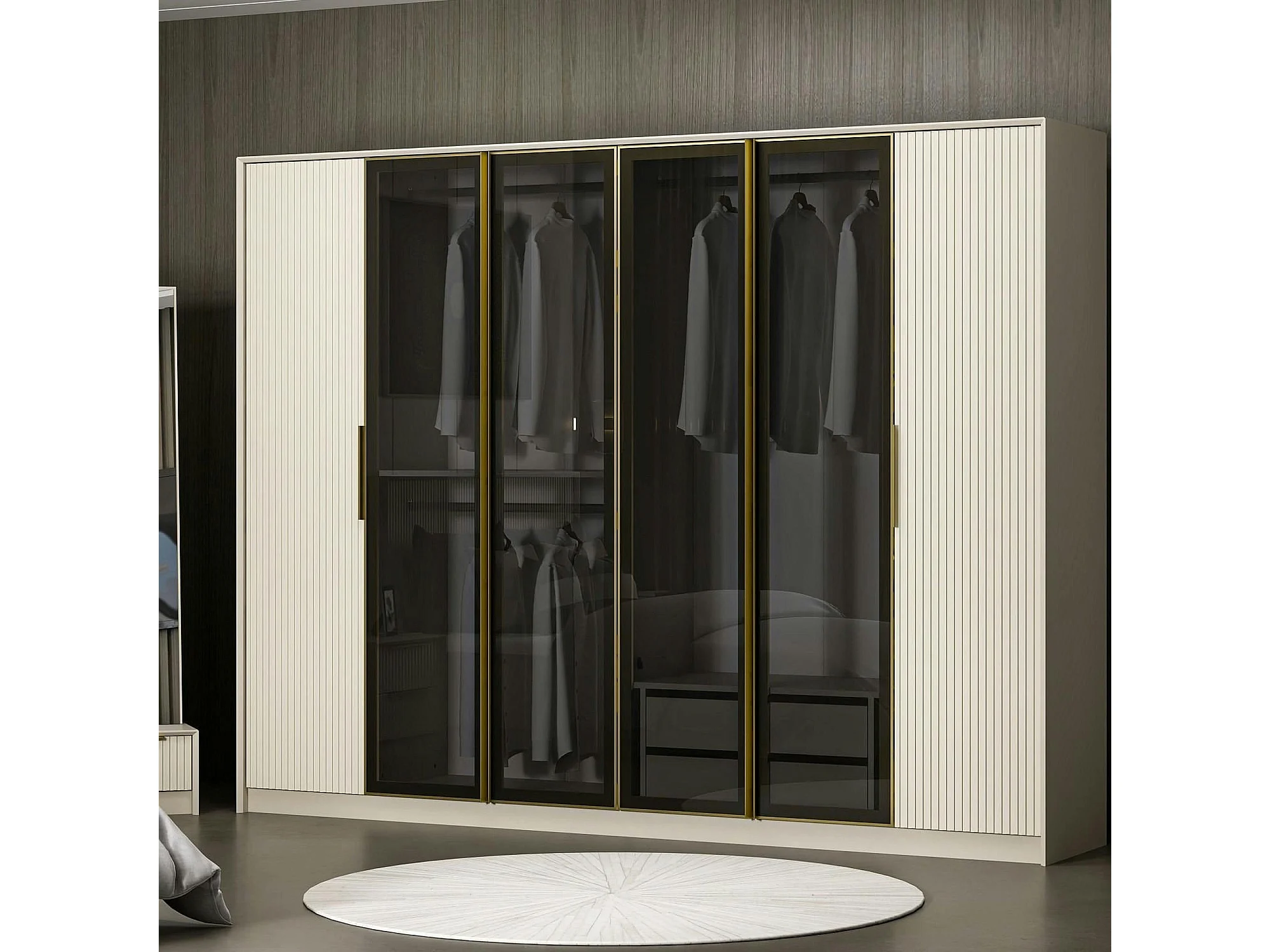 Armoire dressing blanc 4 portes verre H 210 cm BYRON