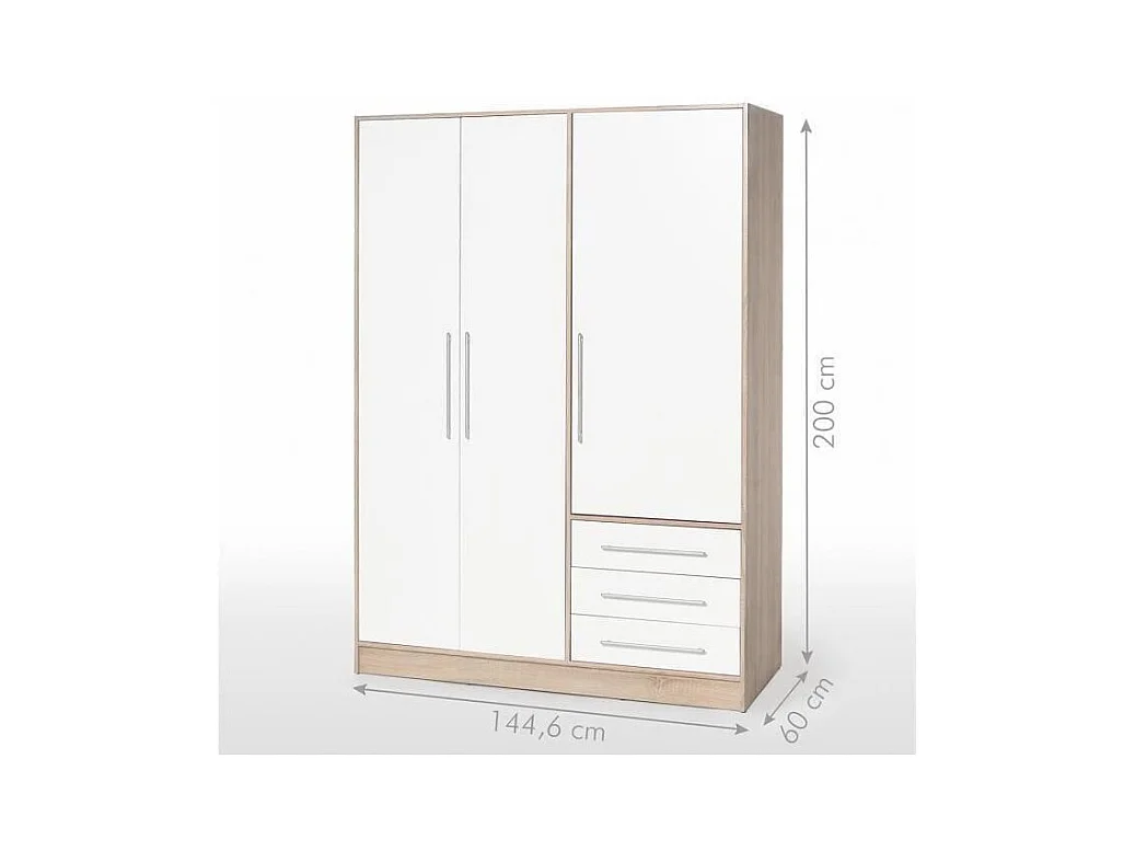Armoire dressing 145 cm 3 portes blanc décor chêne clair - FARO