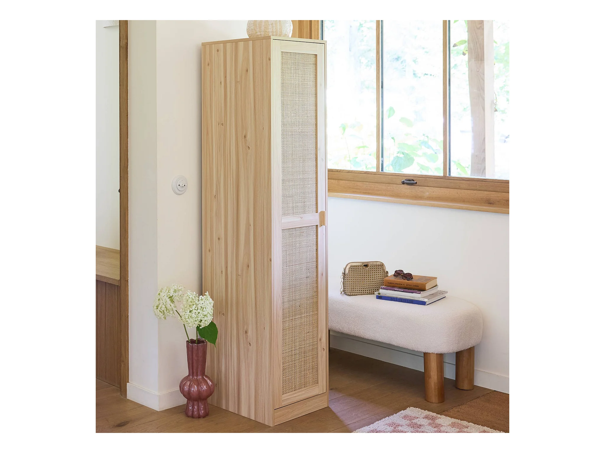 Armoire dressing cannage et effet bois. garde-robe 1 porte. 5 étagères H180cm