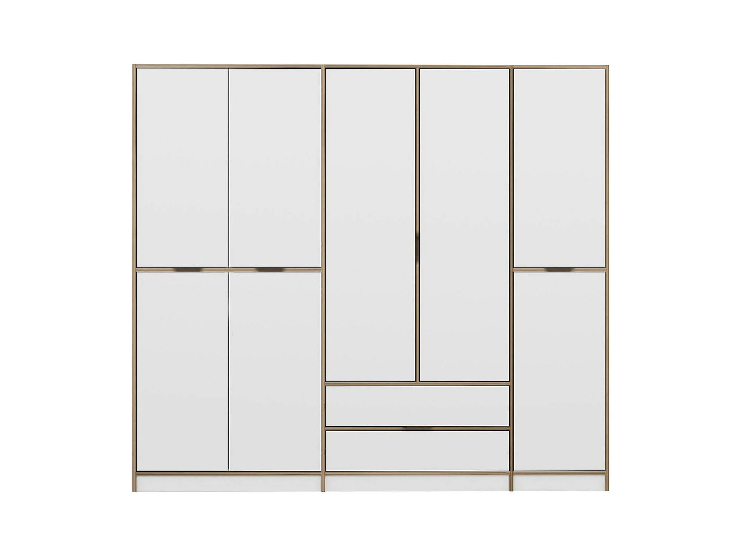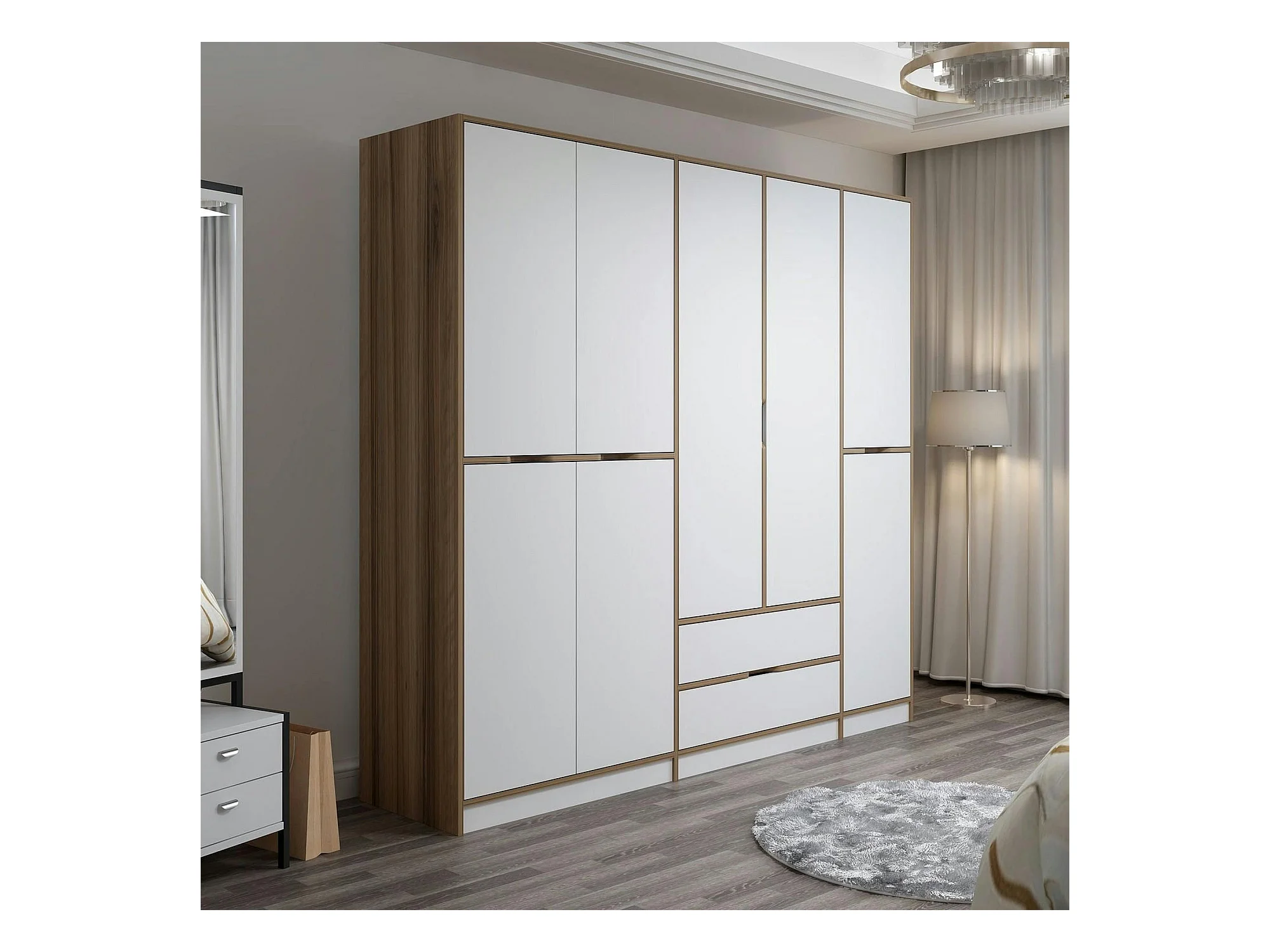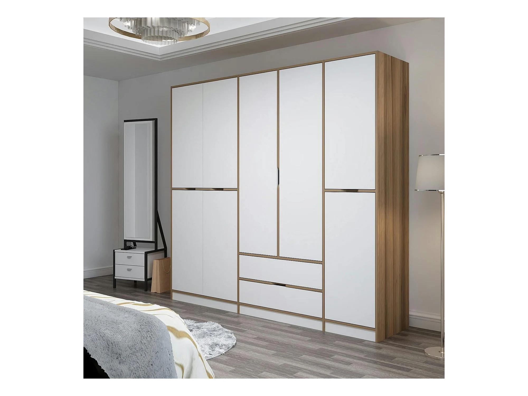 Armoire dressing chambre effet bois, 8 portes blanches BYRON