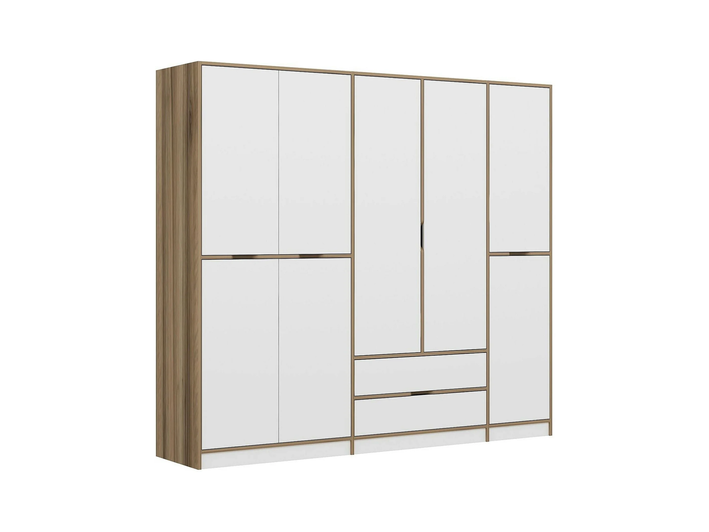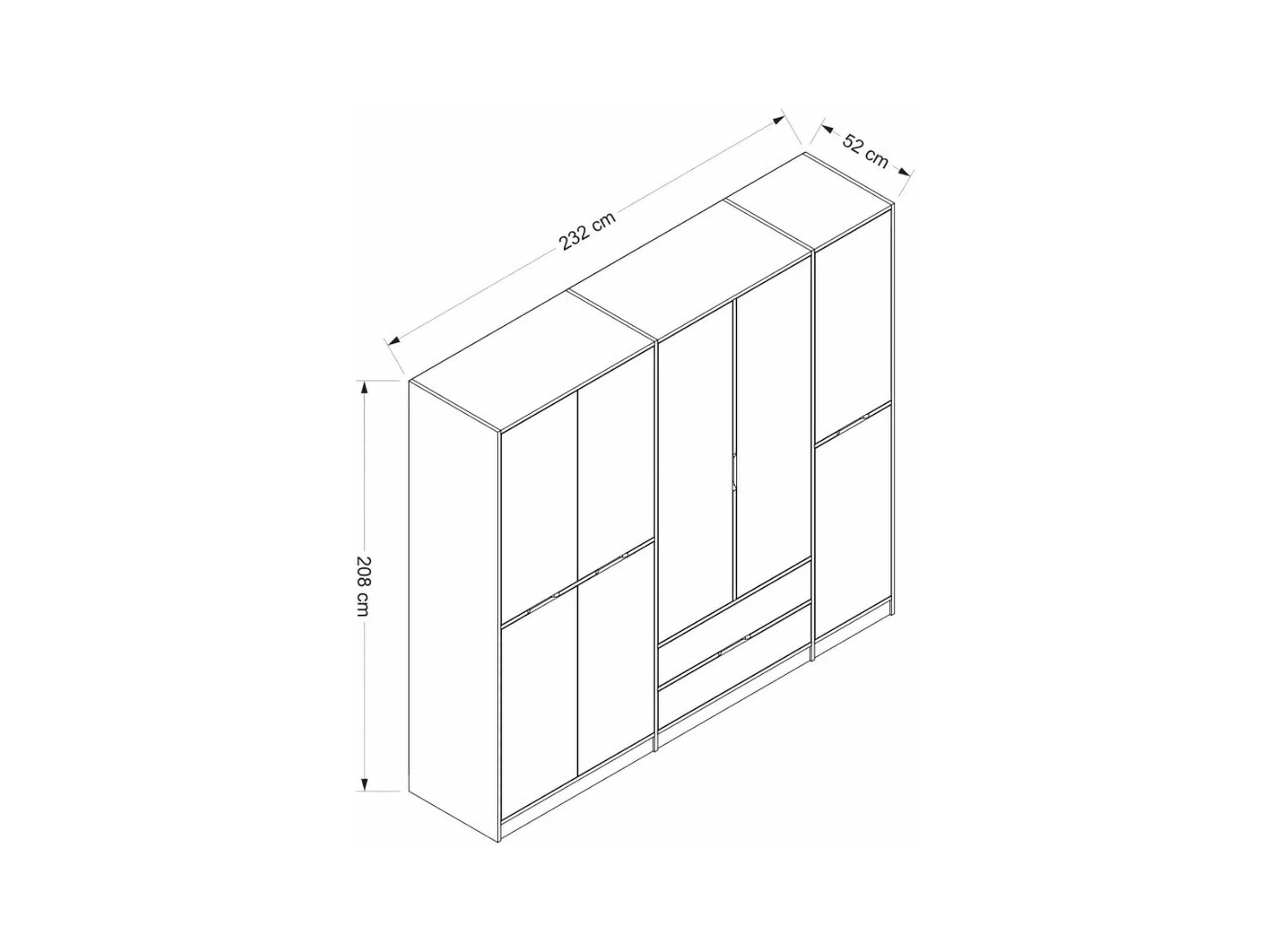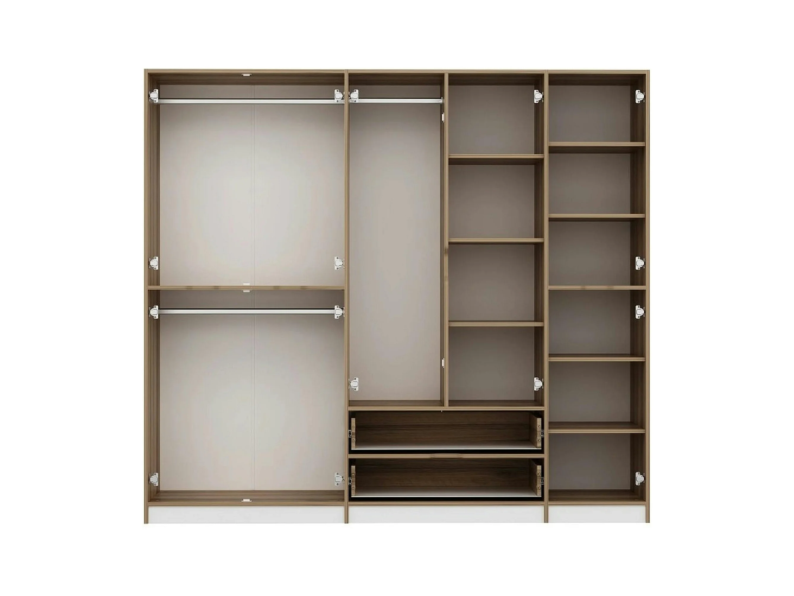 Armoire dressing chambre effet bois, 8 portes blanches BYRON