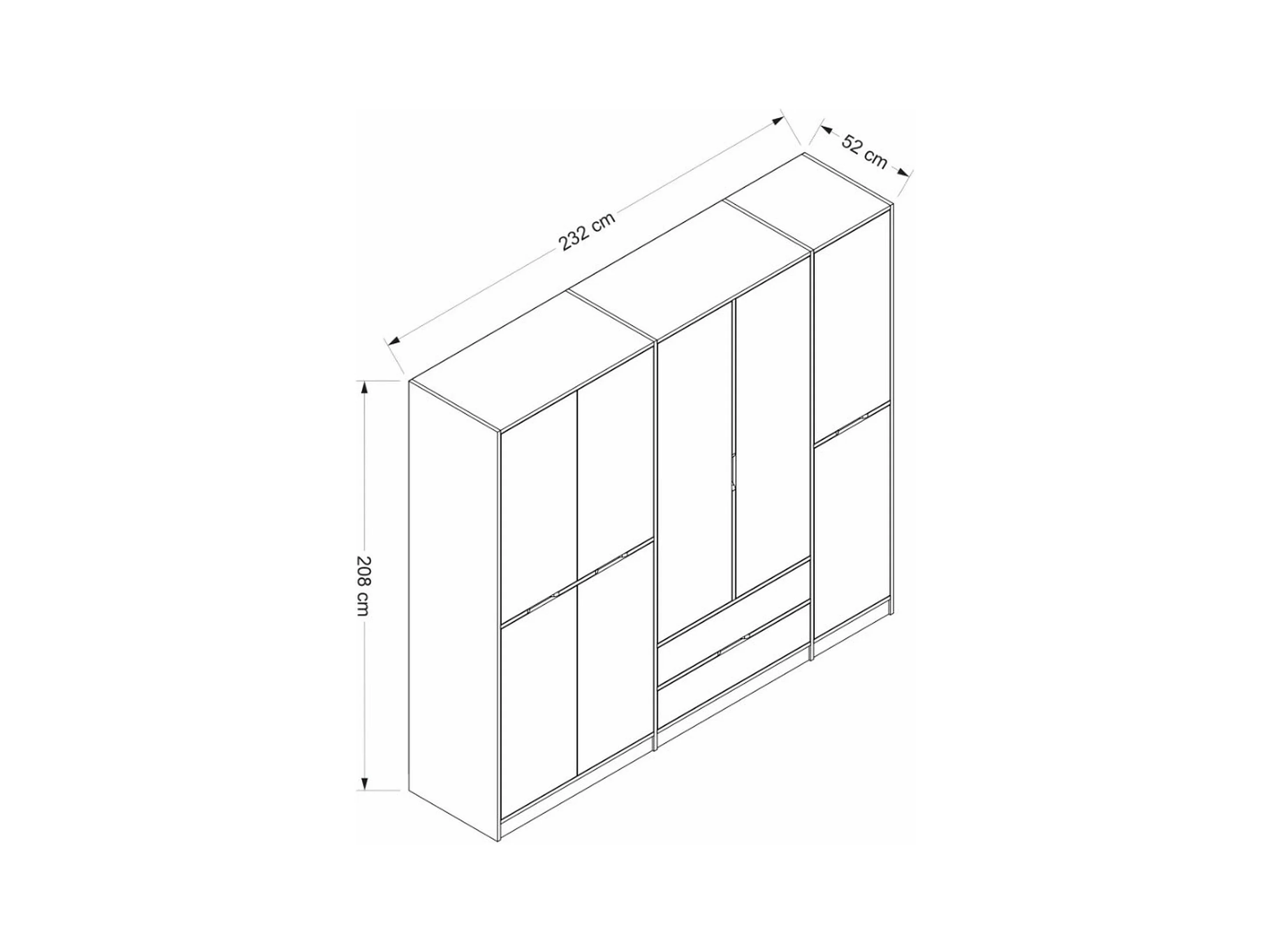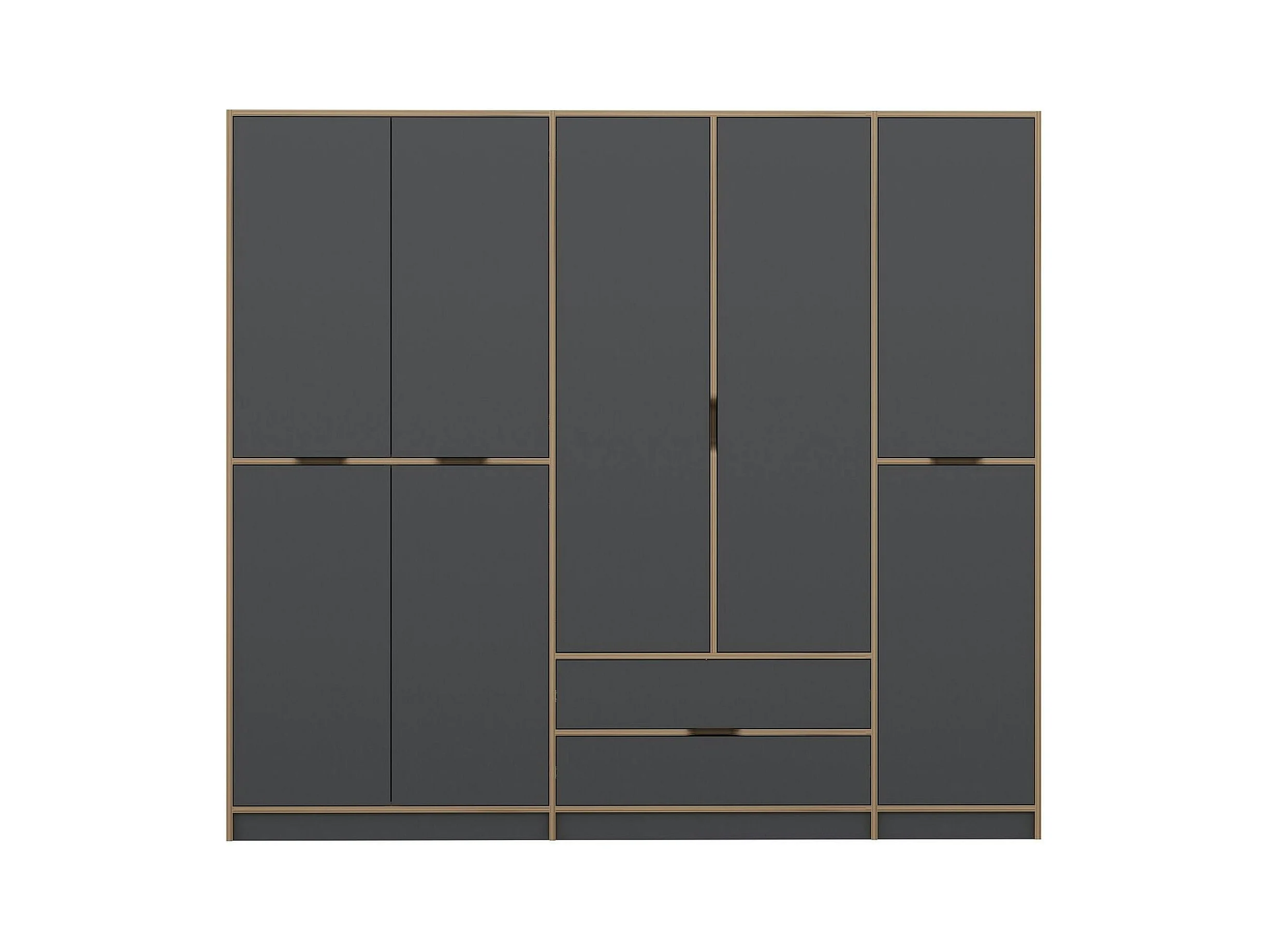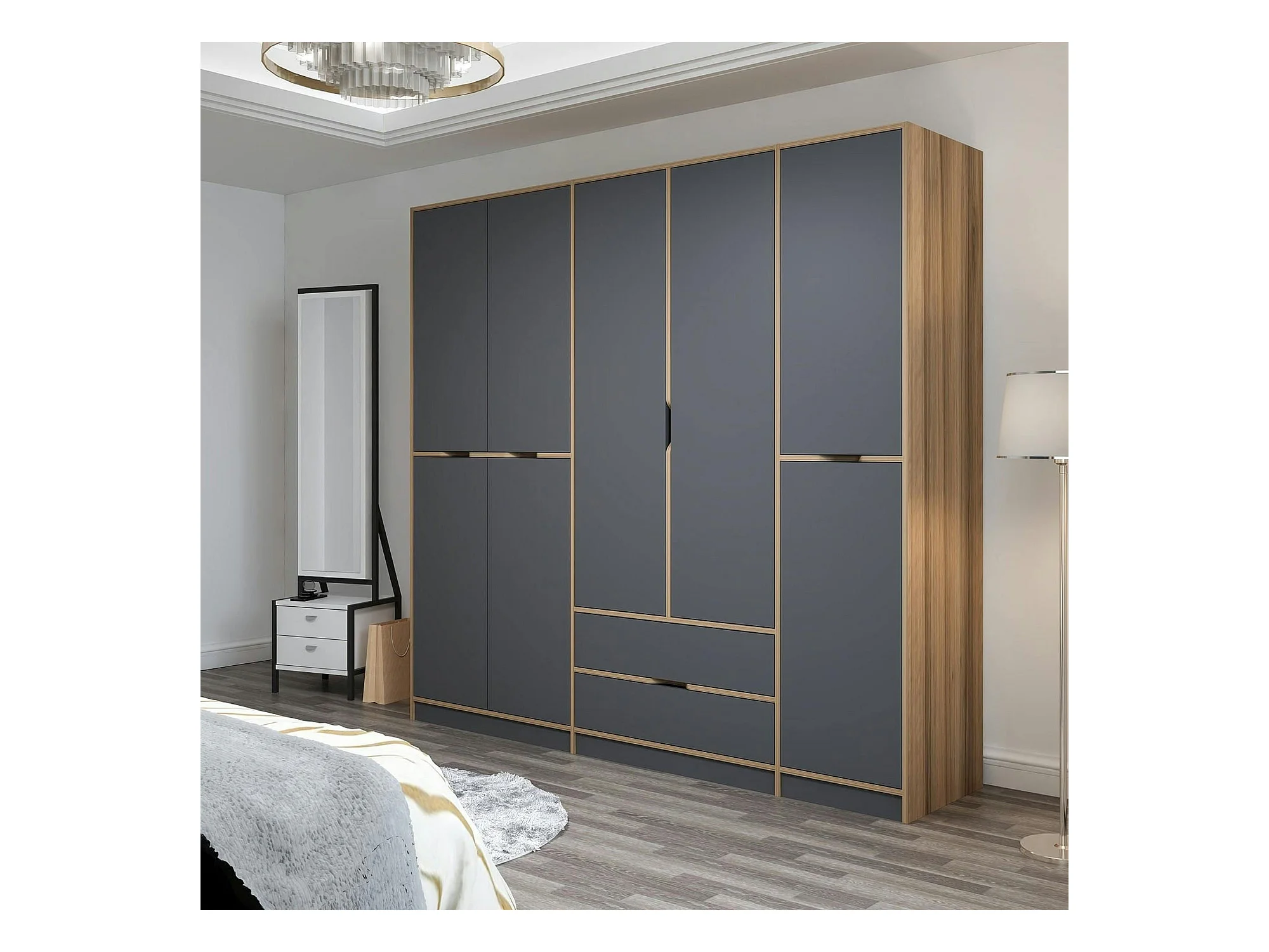 Armoire dressing chambre effet bois, 8 portes grises BYRON