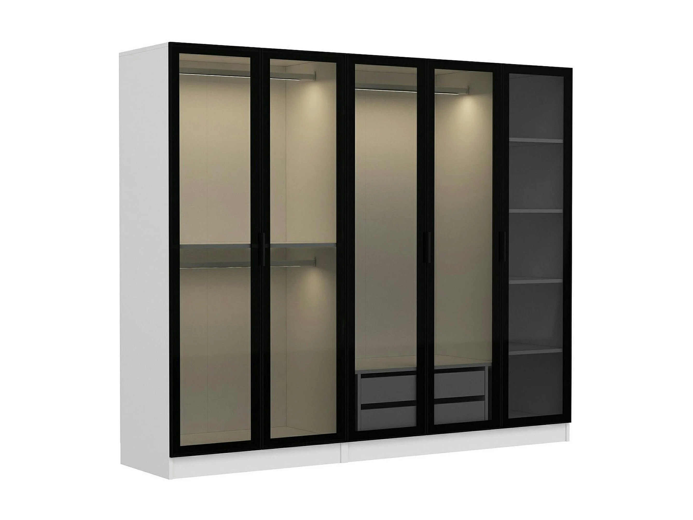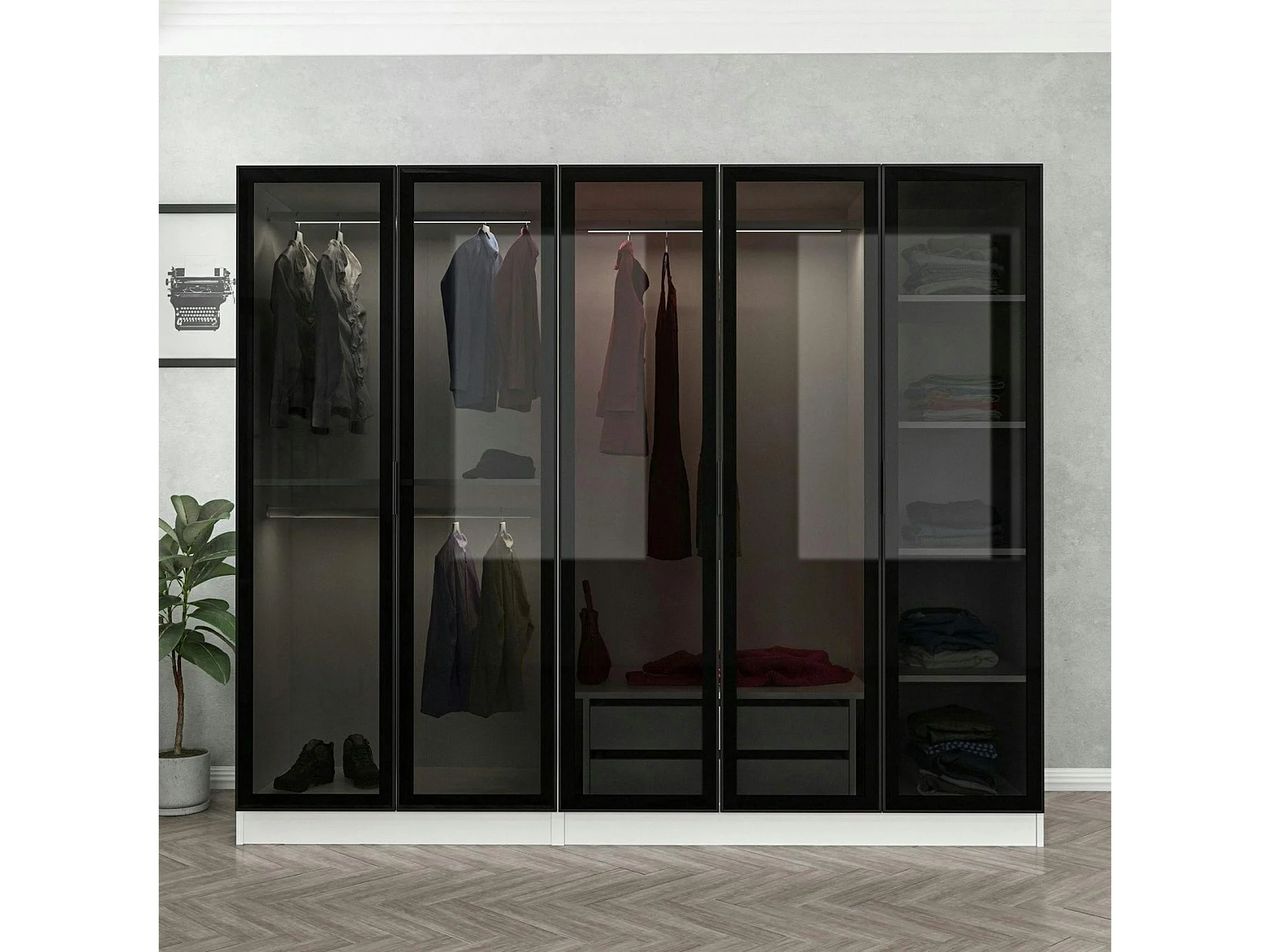 Armoire dressing design blanc 5 portes verre H 210 cm BYRON
