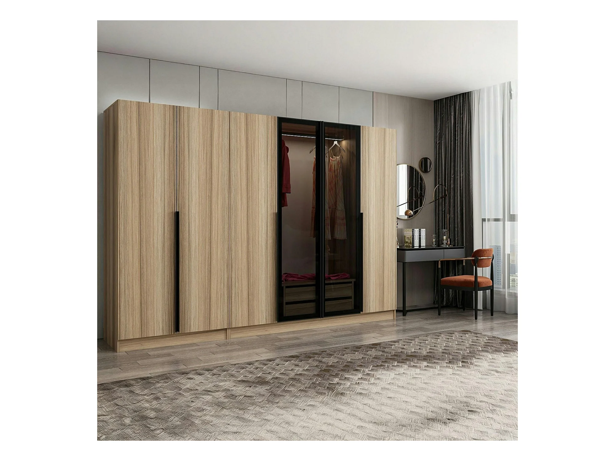 Armoire dressing design effet bois 2 portes verre L 270 cm BYRON