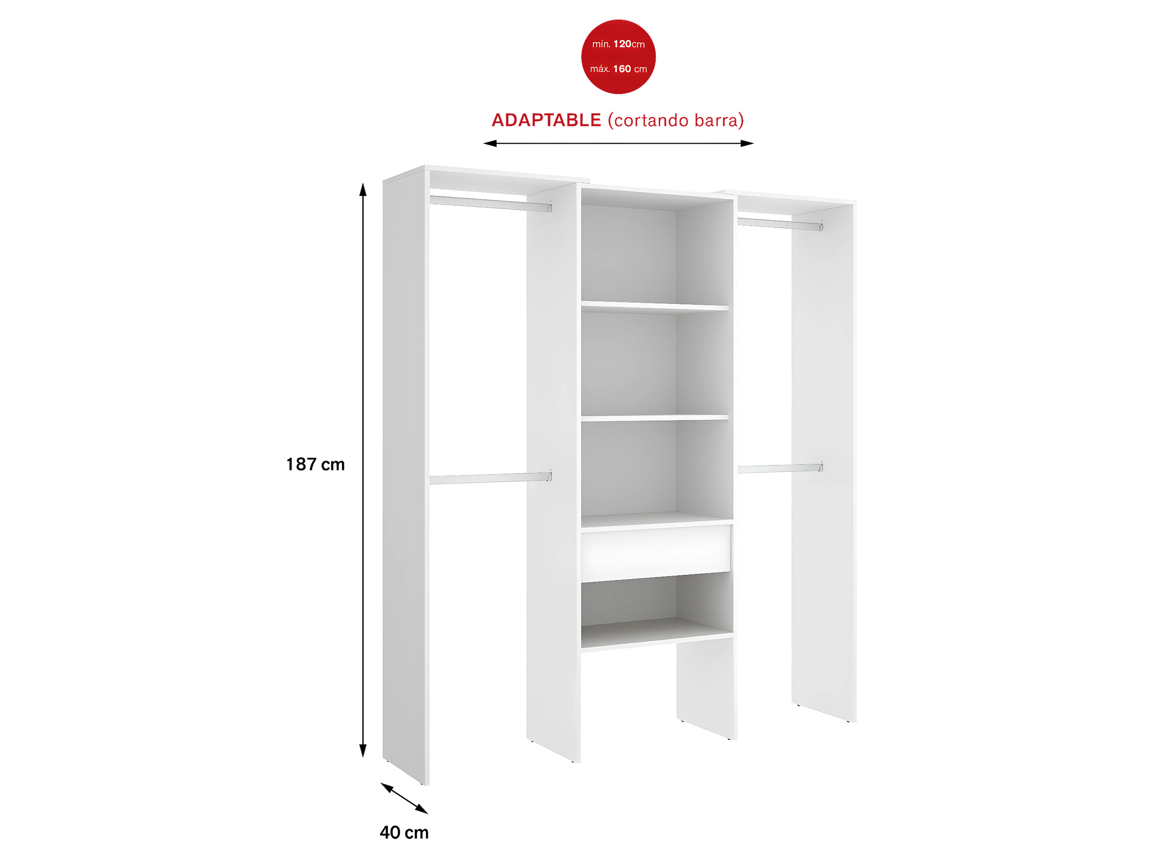 Armoire dressing en bois mélaminé avec 1 colonne et penderies coloris blanc - Longueur 160 x Profondeur 50 x Hauteur 187 cm