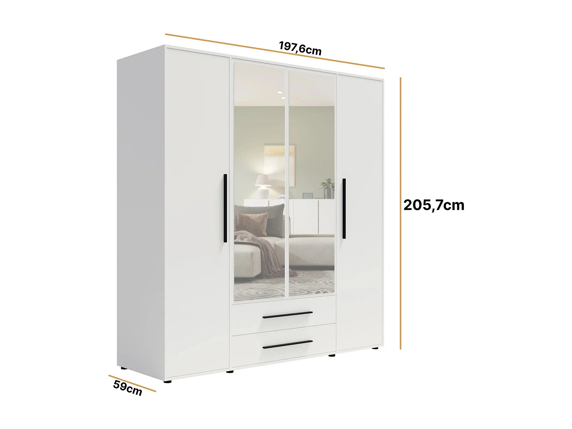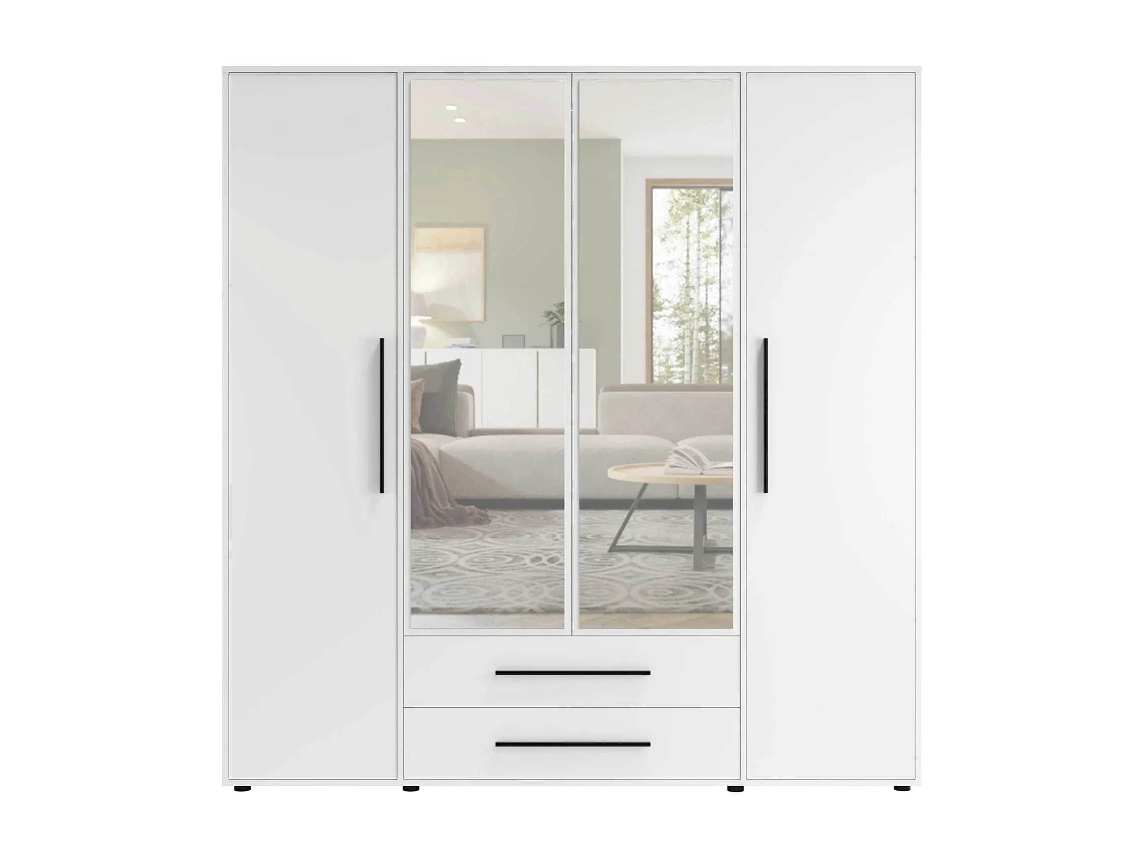 Armoire dressing Modena 200 cm - Blanc Mat avec miroir et tiroirs