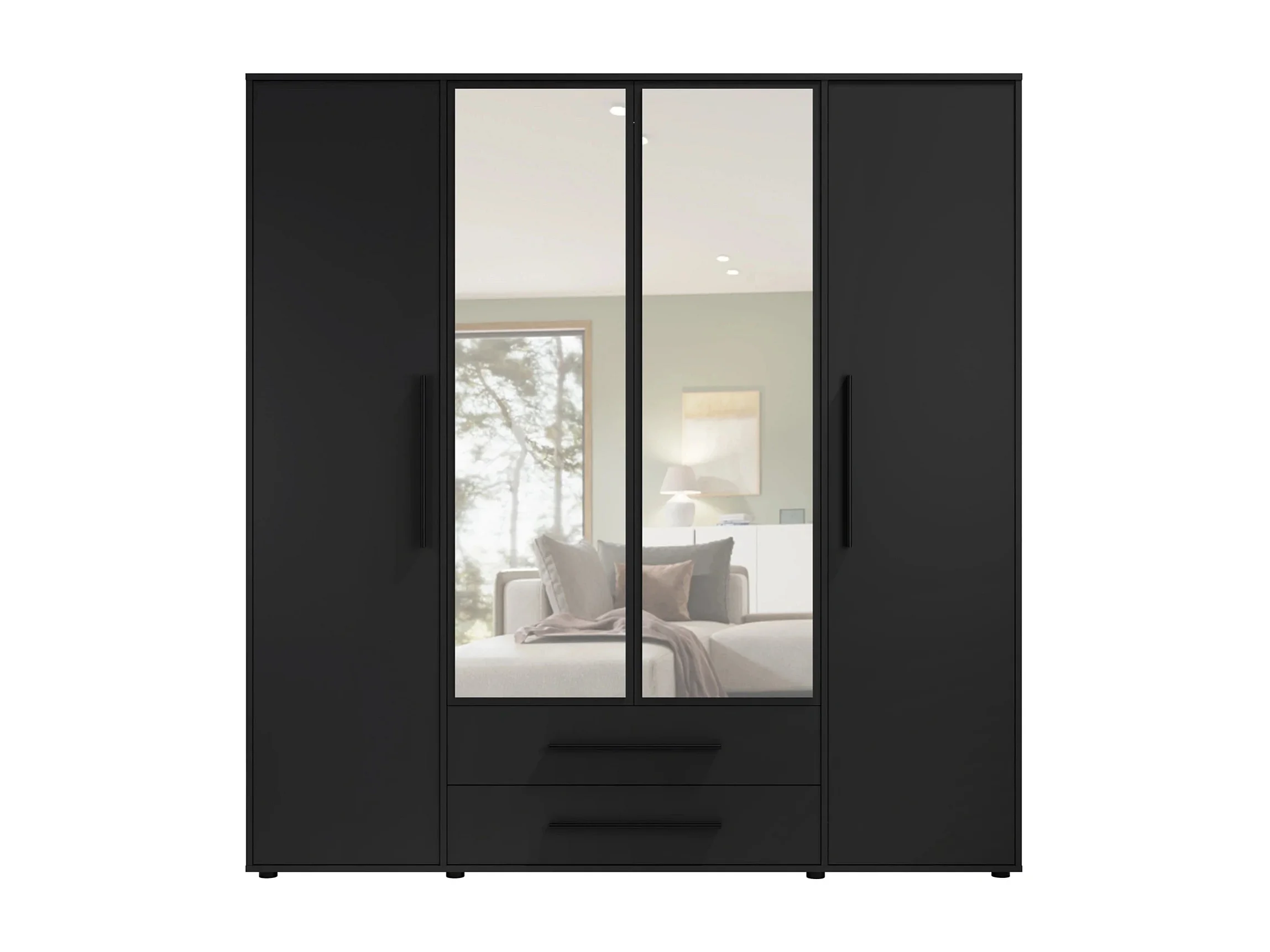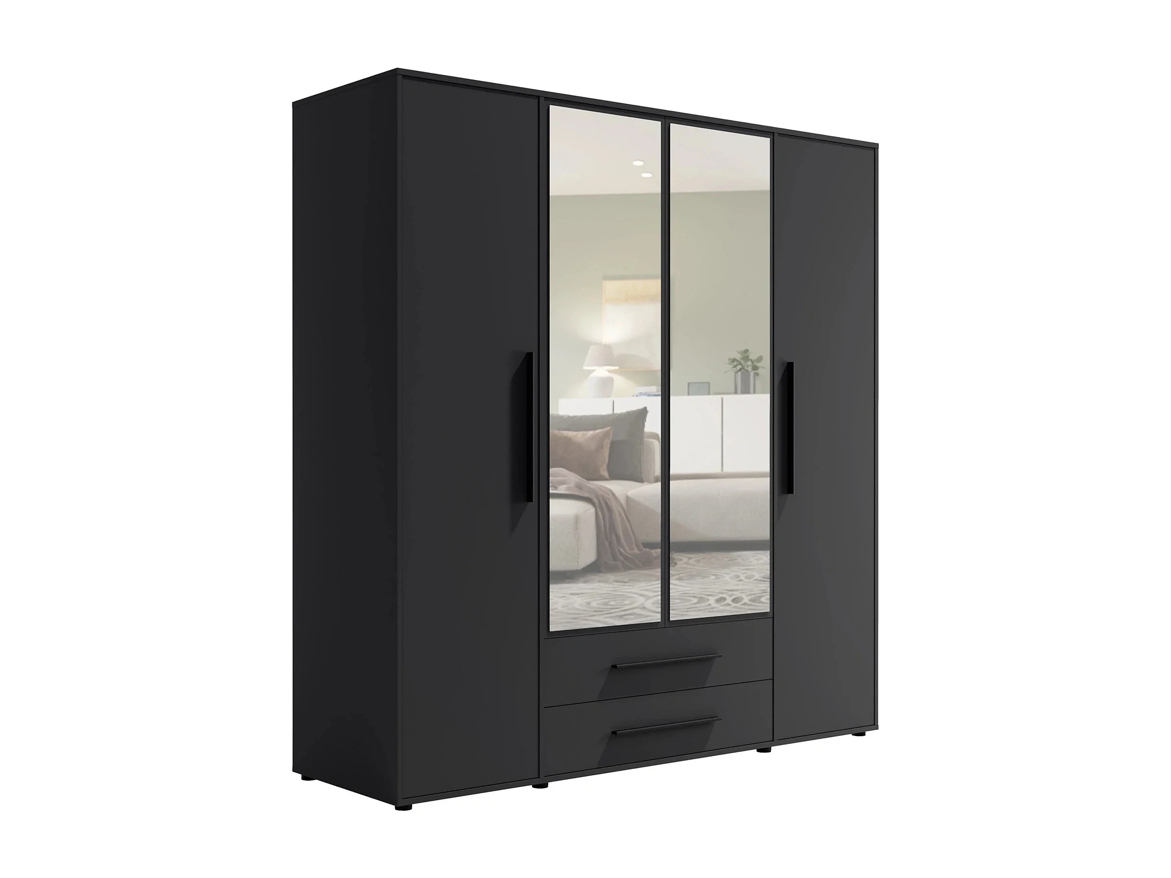 Armoire dressing Modena 200 cm - Noir Mat avec miroir et tiroirs
