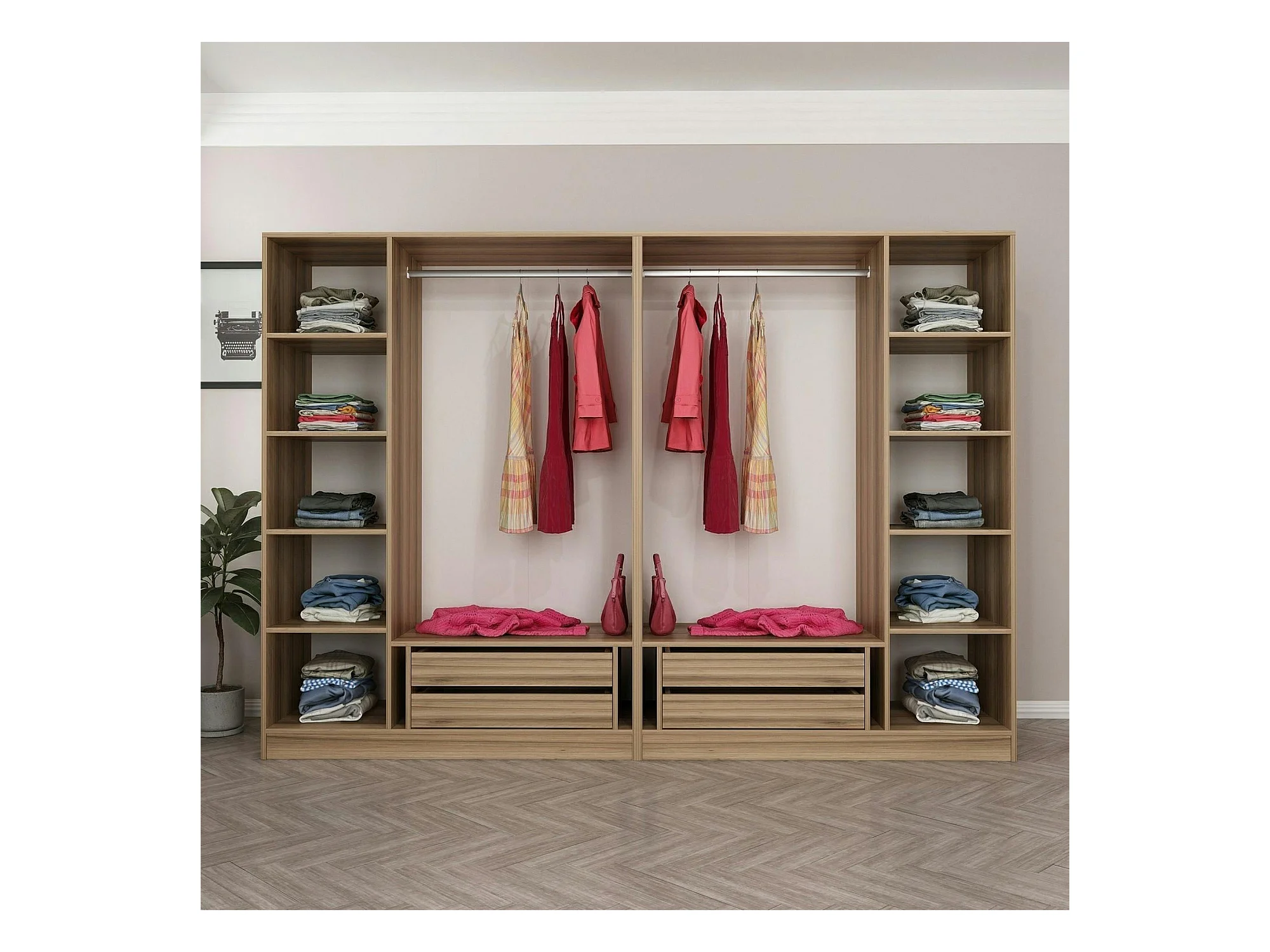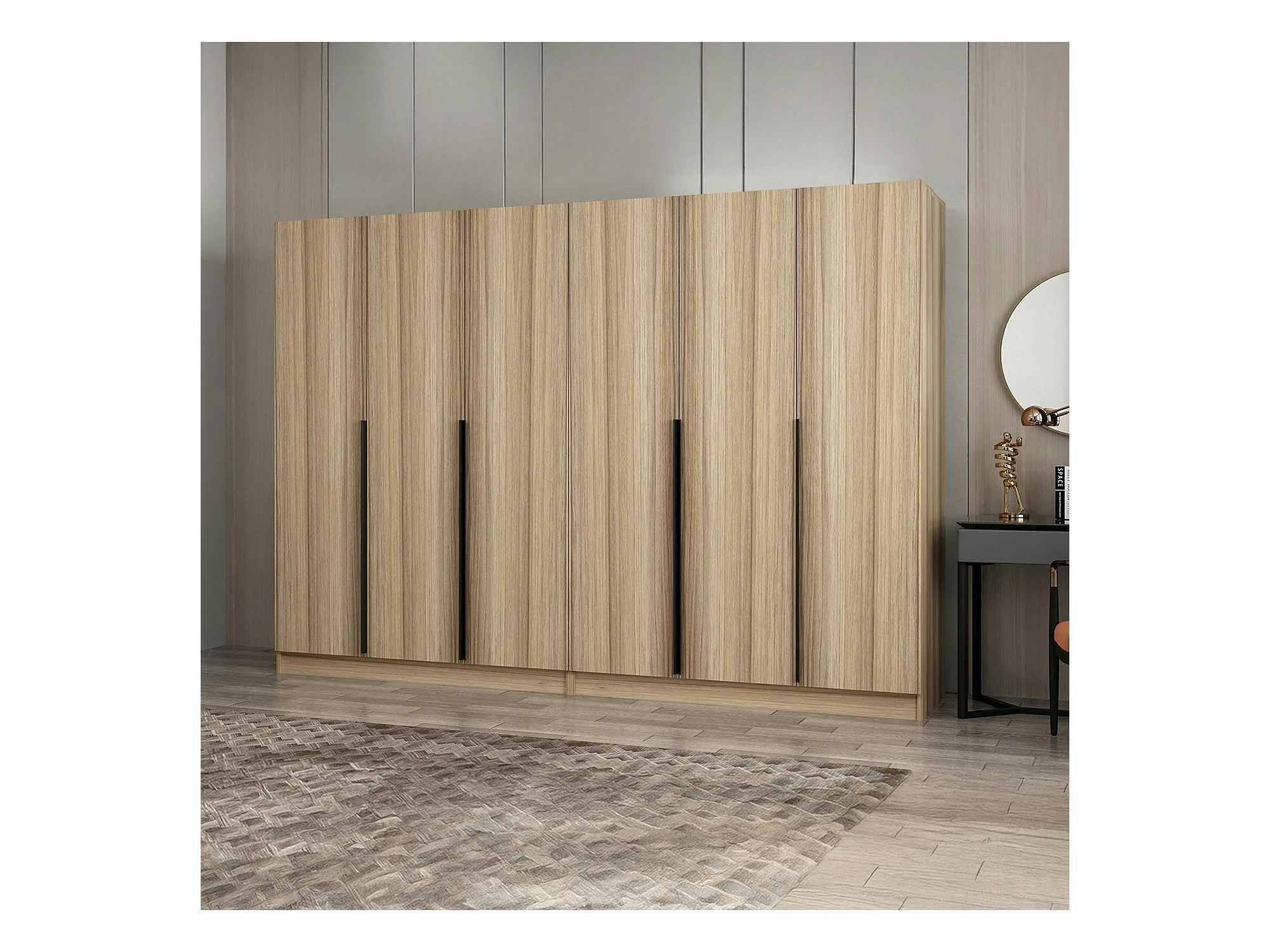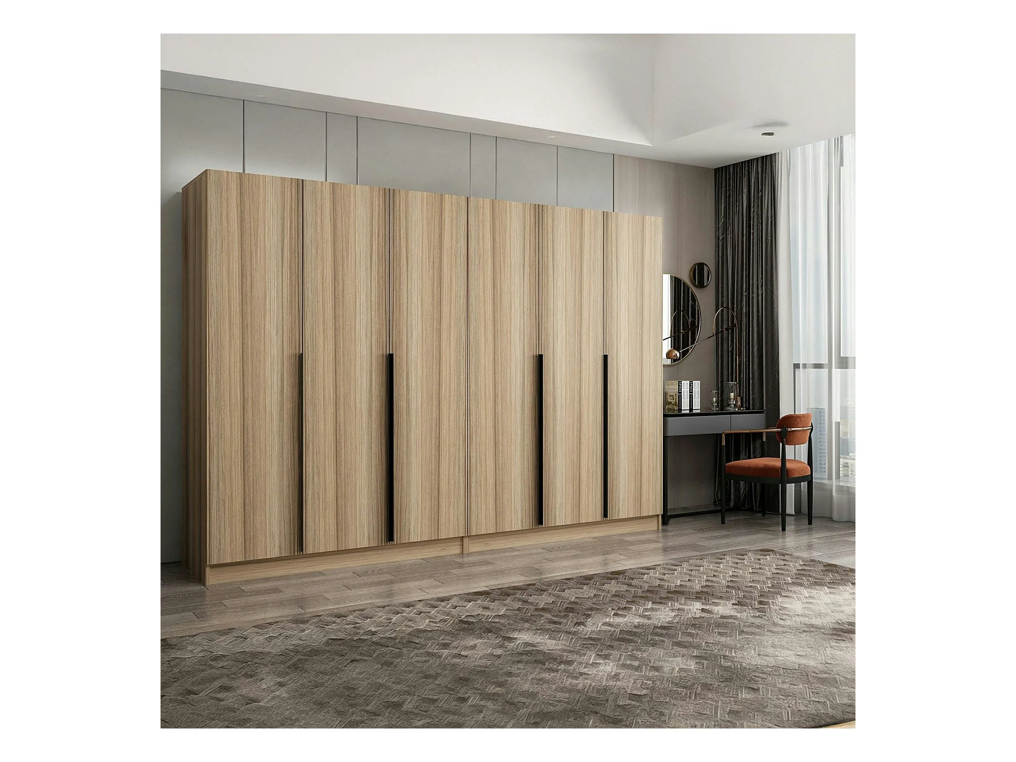 Armoire dressing moderne effet bois 6 portes H 270 cm BYRON