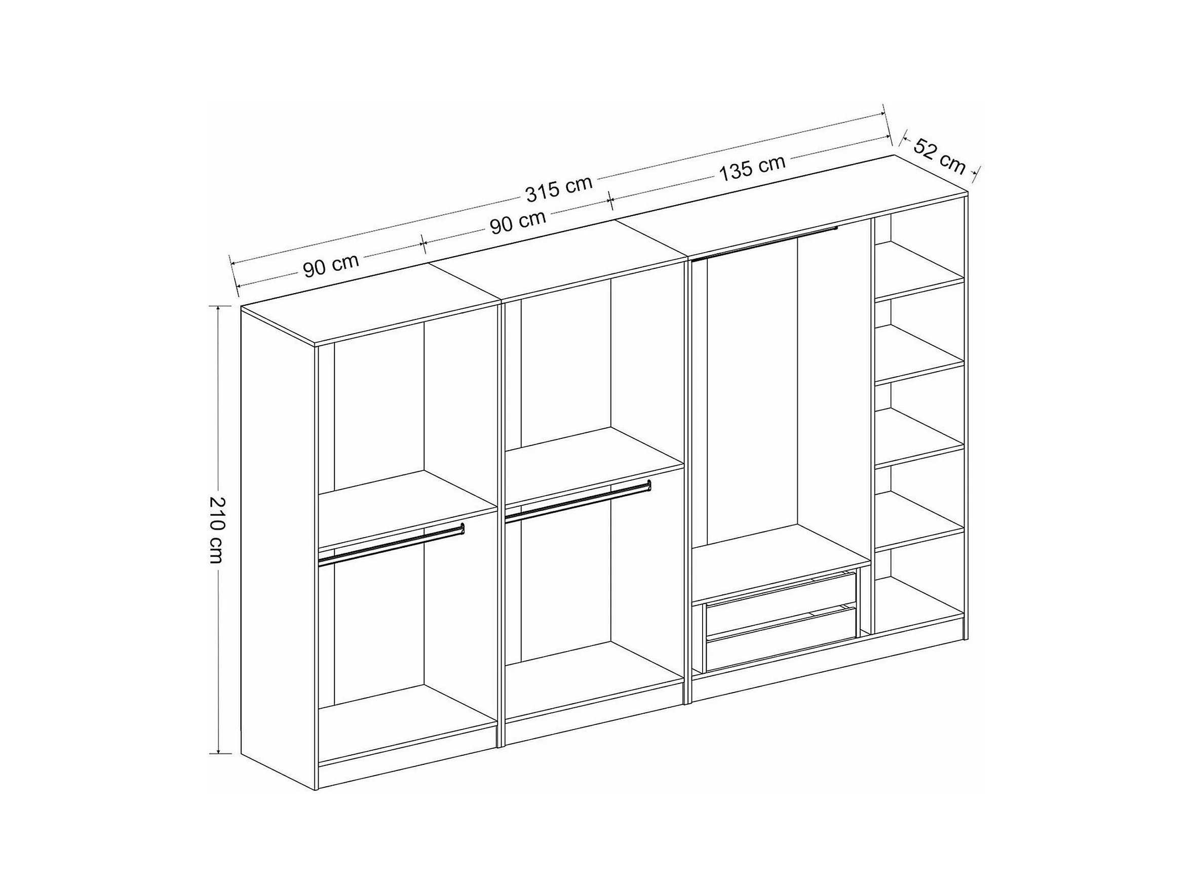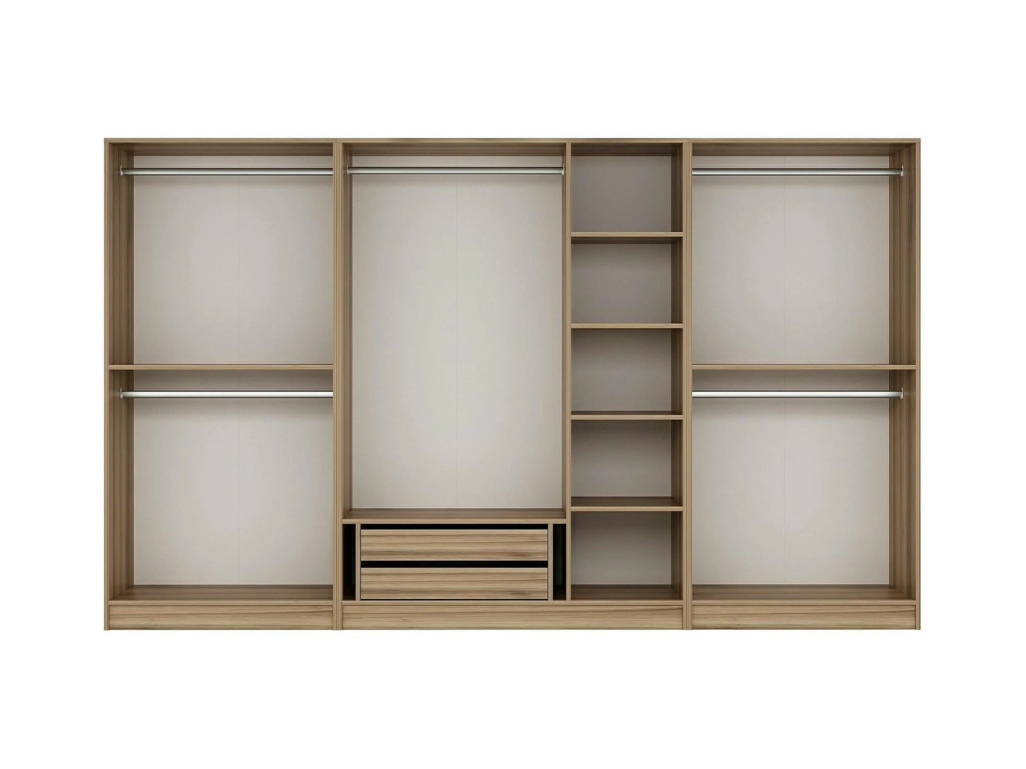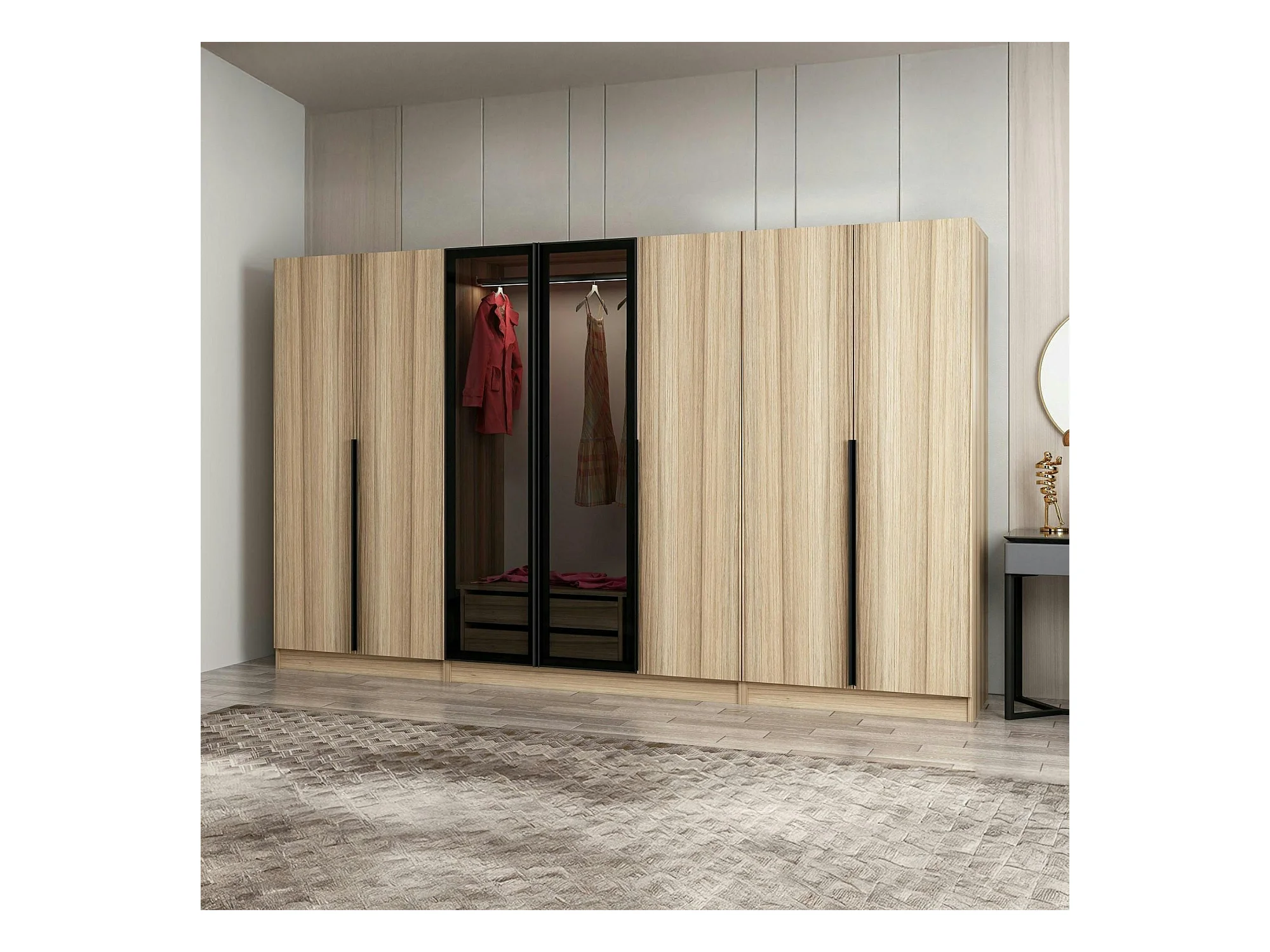 Armoire dressing XXL effet bois - 2 portes verre L.315 cm BYRON