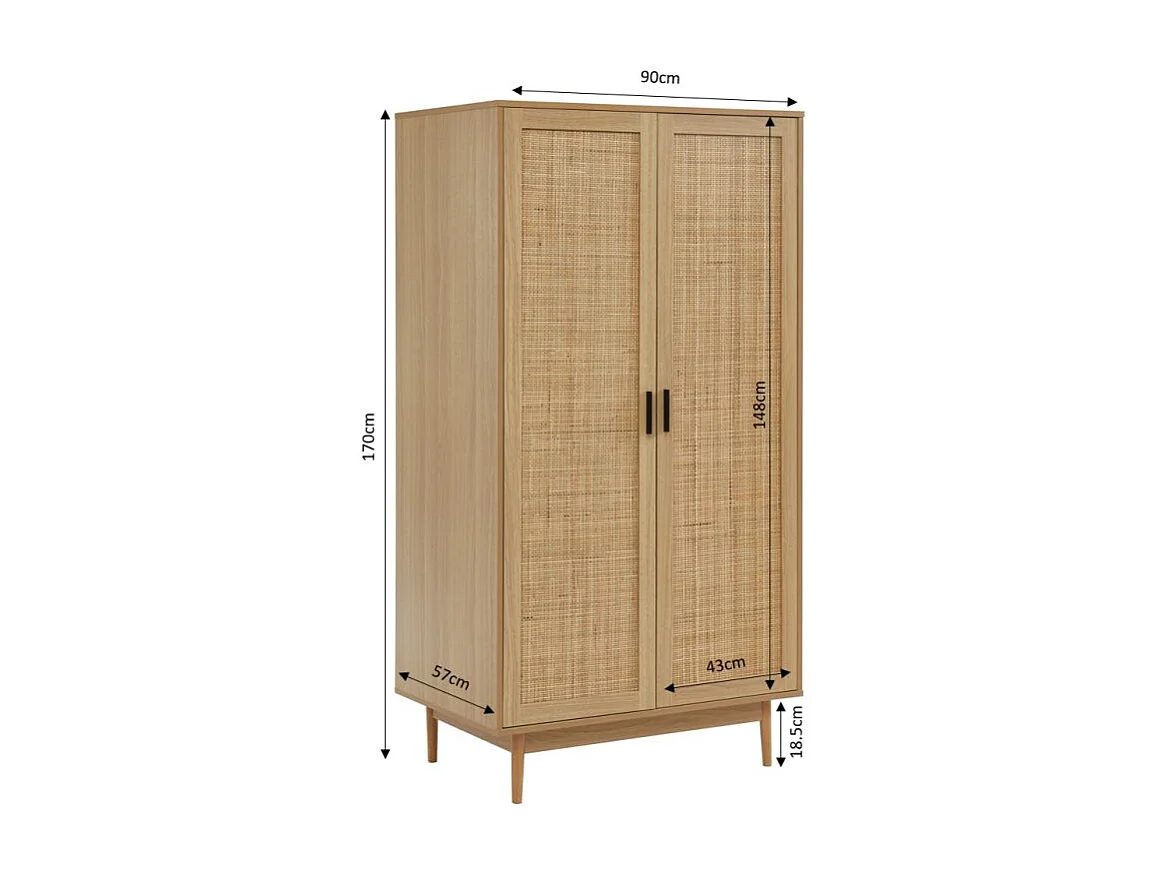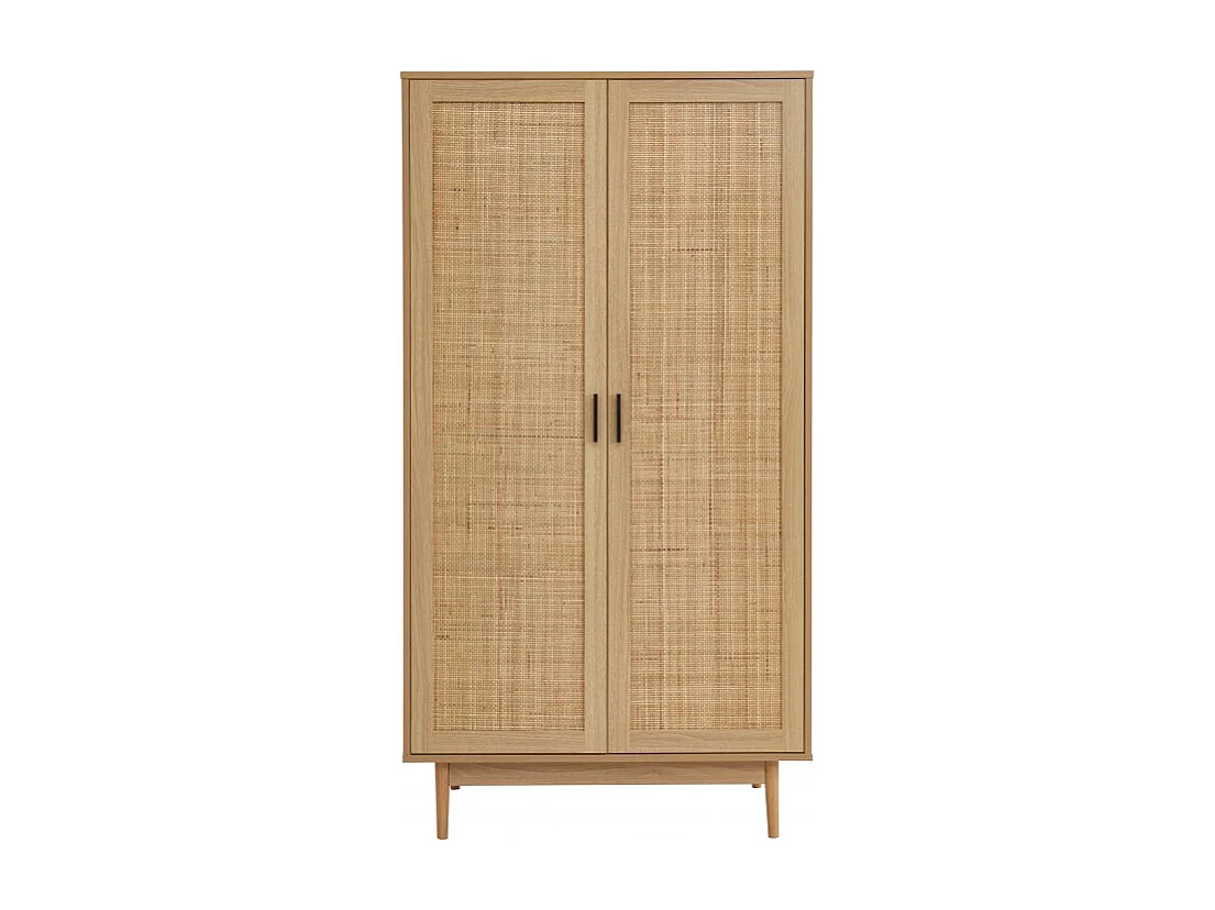 Armoire effet chêne et cannage rotin 2 portes 90 cm ZIRCON