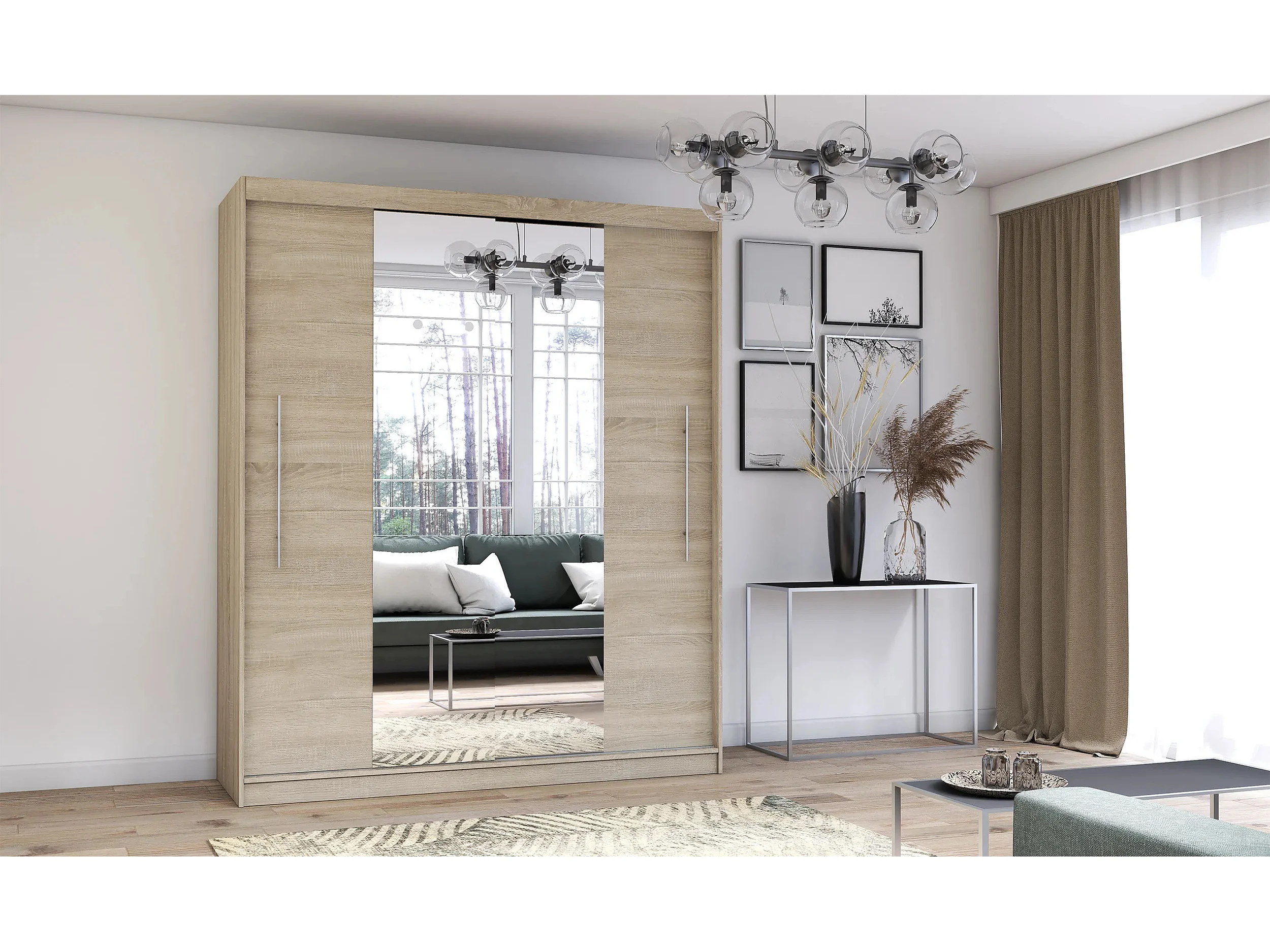 Armoire Eireen I 203 cm avec miroir - Chêne