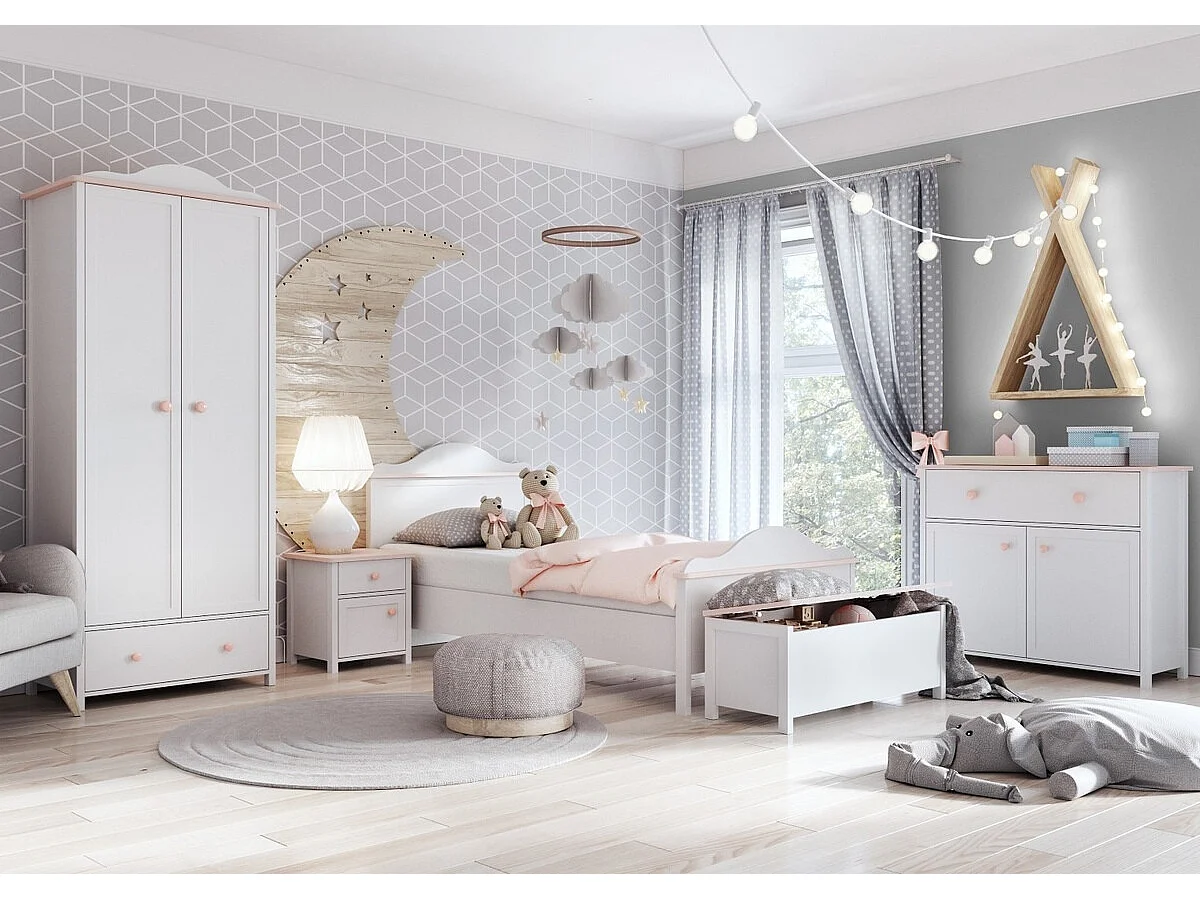 Armoire Elblive 111, Rose clair|Blanc, 184x85x52cm, Portes d'armoire: Avec des charnières