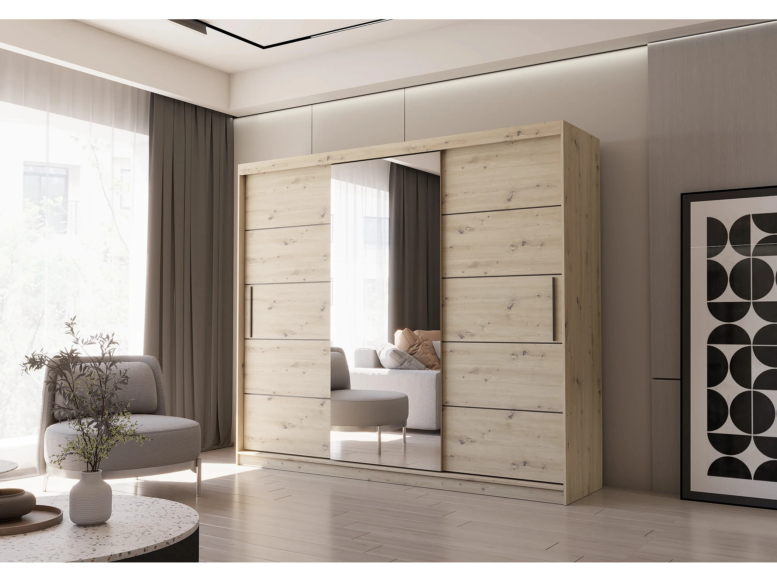 Armoire Elior 250 cm avec miroir - Effet bois