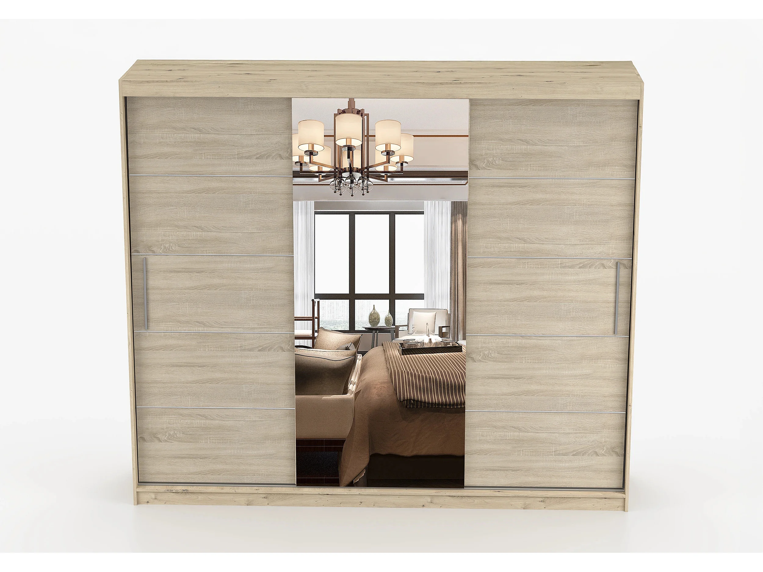 Armoire Elior 250 cm avec miroir - Effet bois - Chêne
