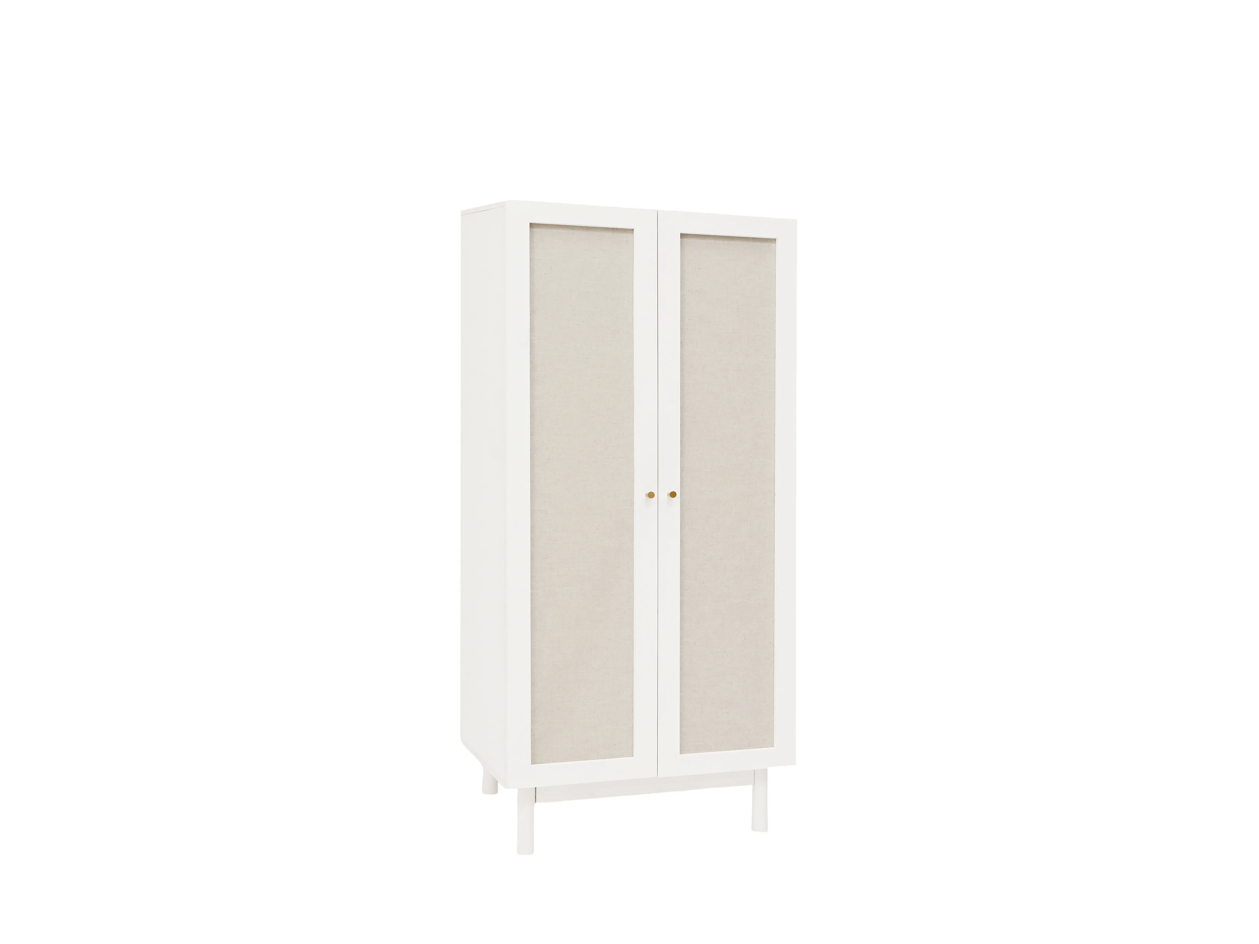 Armoire en bois de sapin et toile de lin blanc 180x80cm - LINEN - DECOWOOD