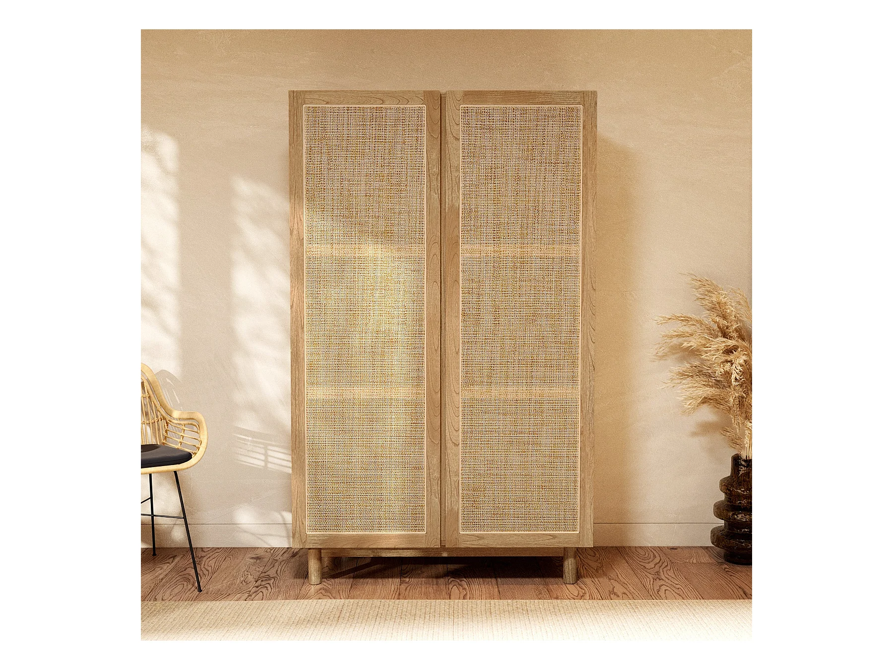 Armoire en bois massif de mindi et rotin - Delya