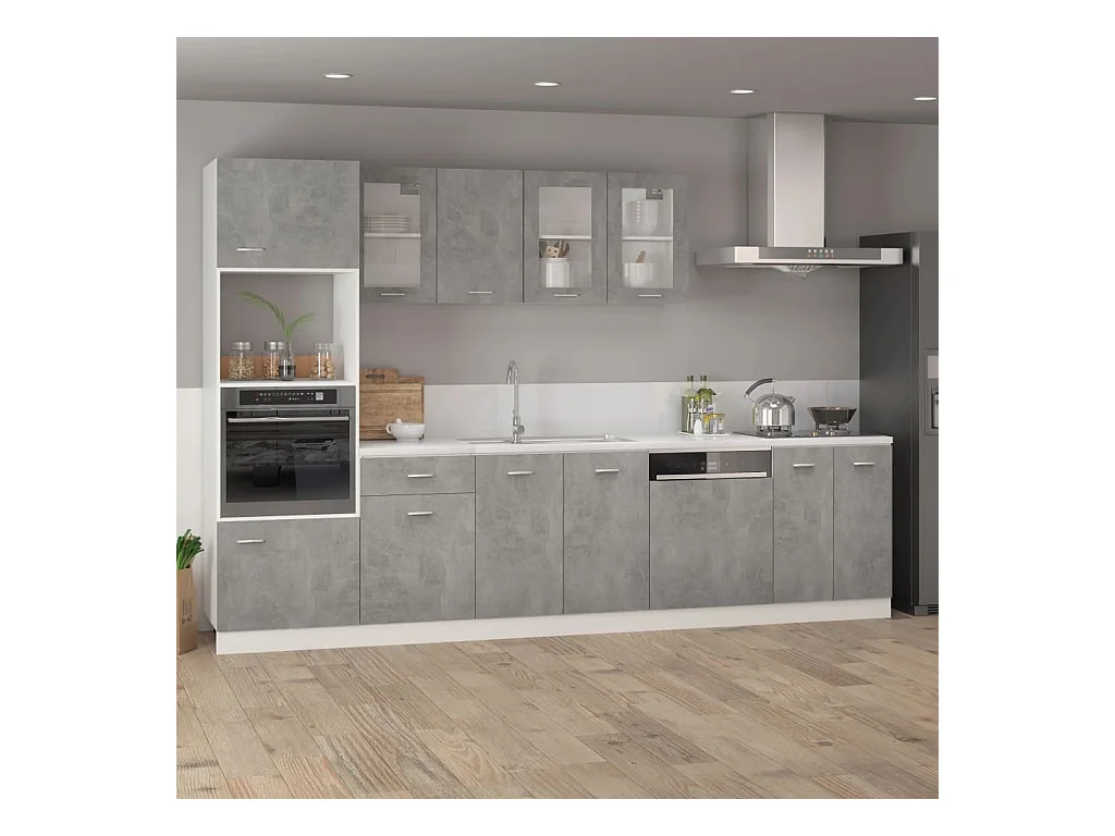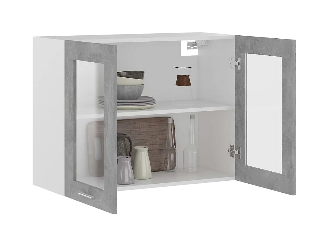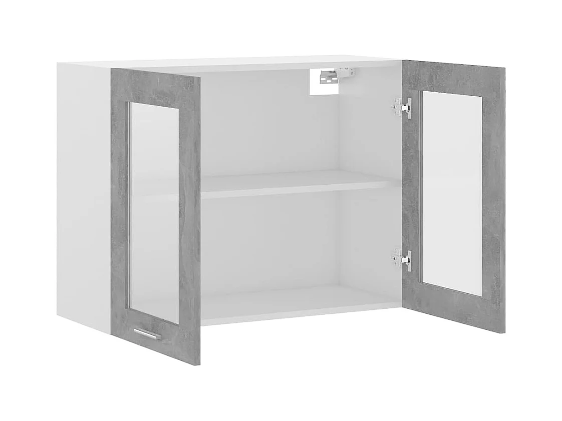 Armoire en verre suspendue Gris béton Bois d'ingénierie