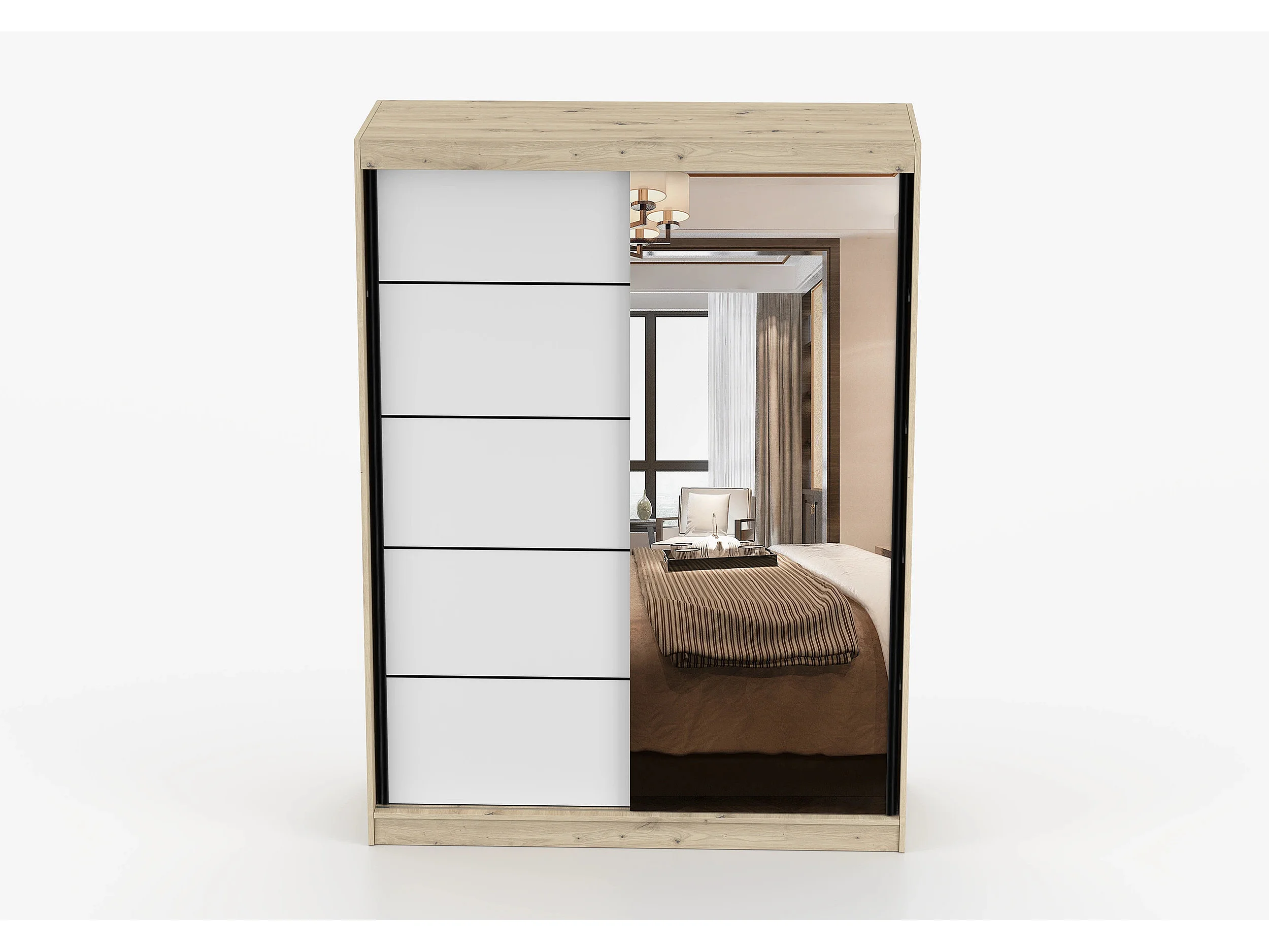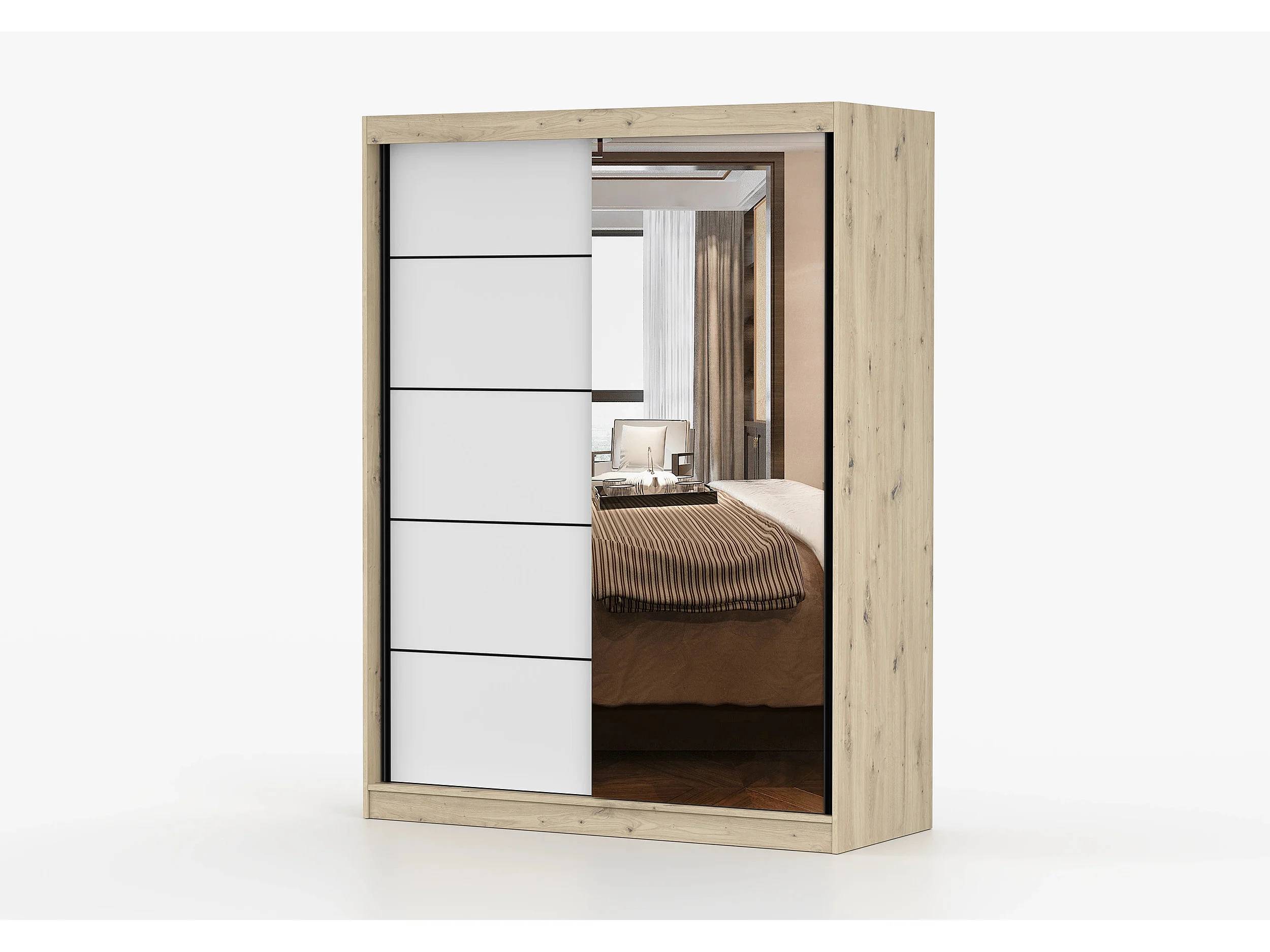 Armoire Enola 150 cm avec miroir - Effet bois - Blanc