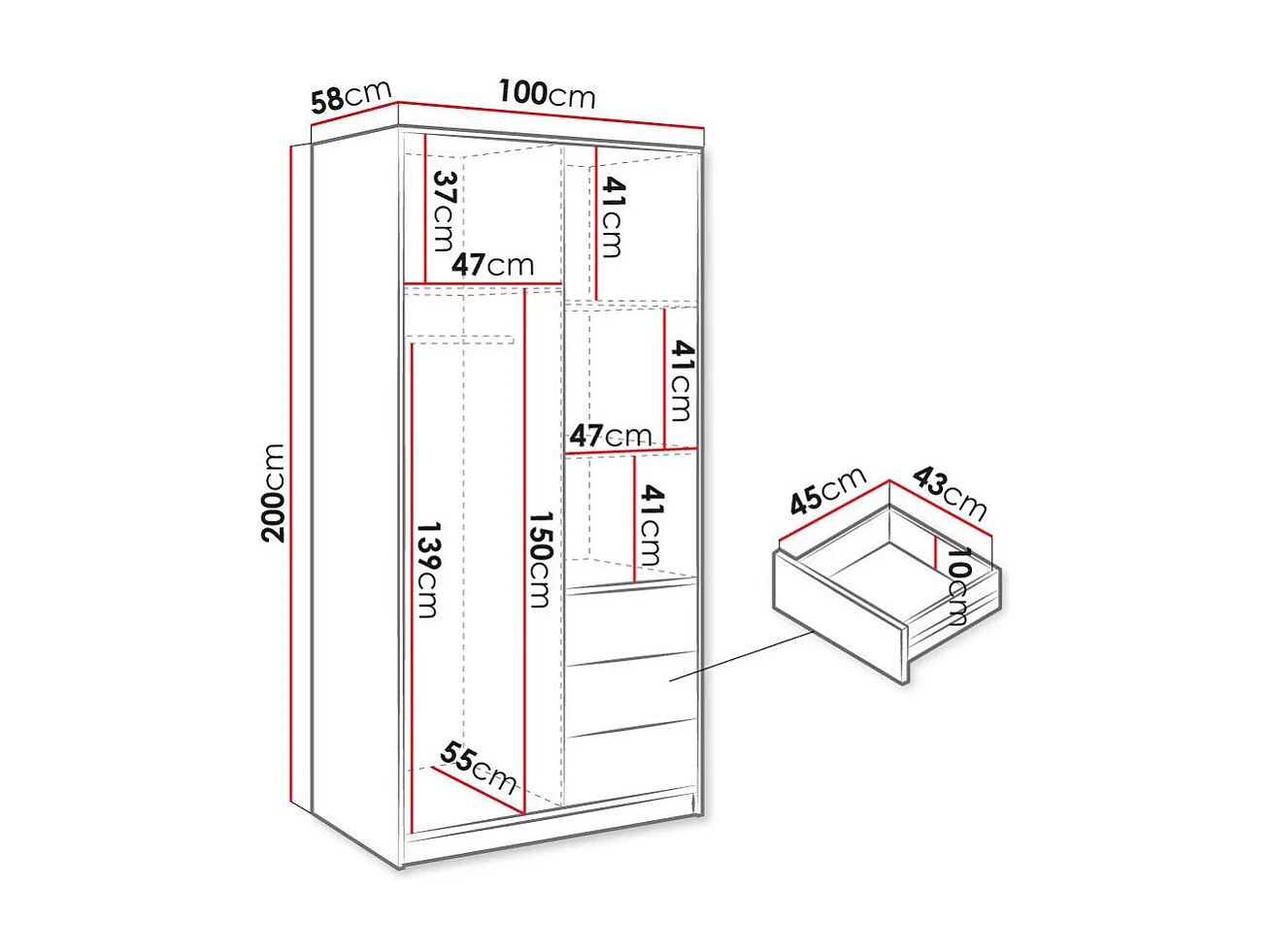 Armoire Enolevo 112, Chêne wotan|Noir, 200x100x58cm, Nombre d'étagères: 4