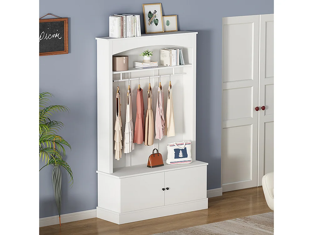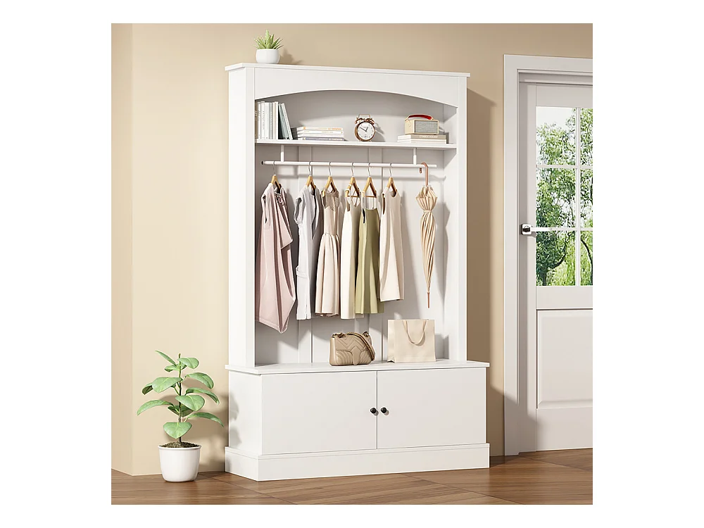 Armoire entrée blanche portemanteau banc chaussures indépendante compacte étagères réglables couloir