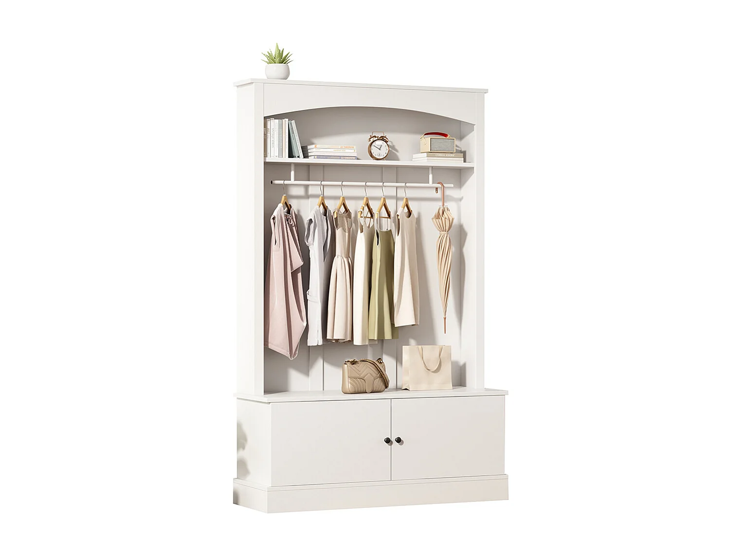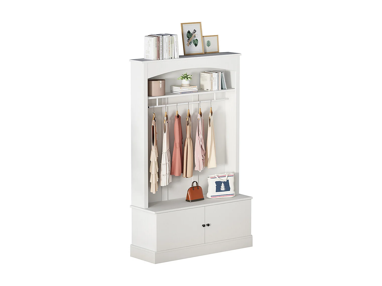 Porte-manteau blanc avec rangement et étagères réglables – Meuble d’entrée compact