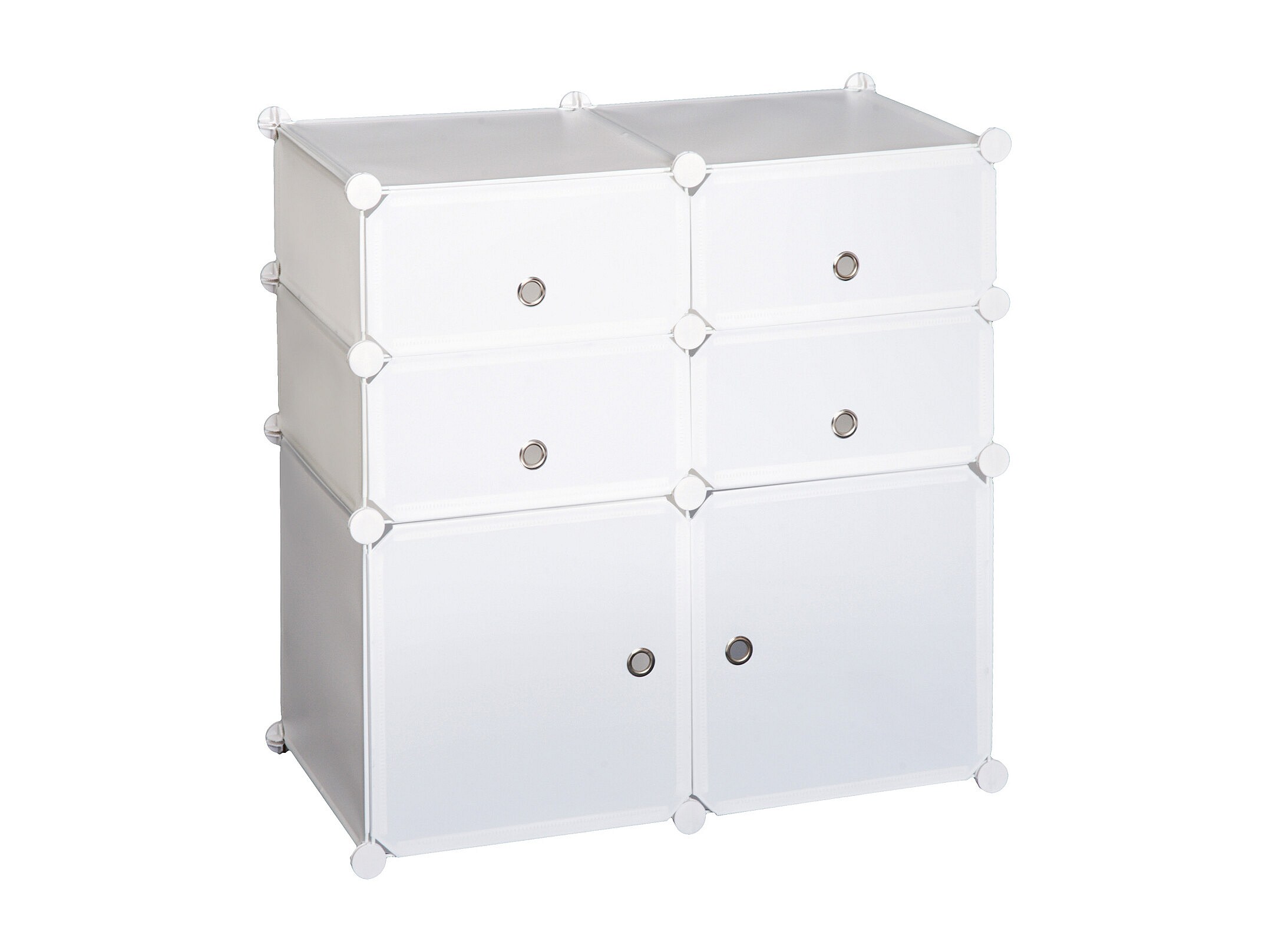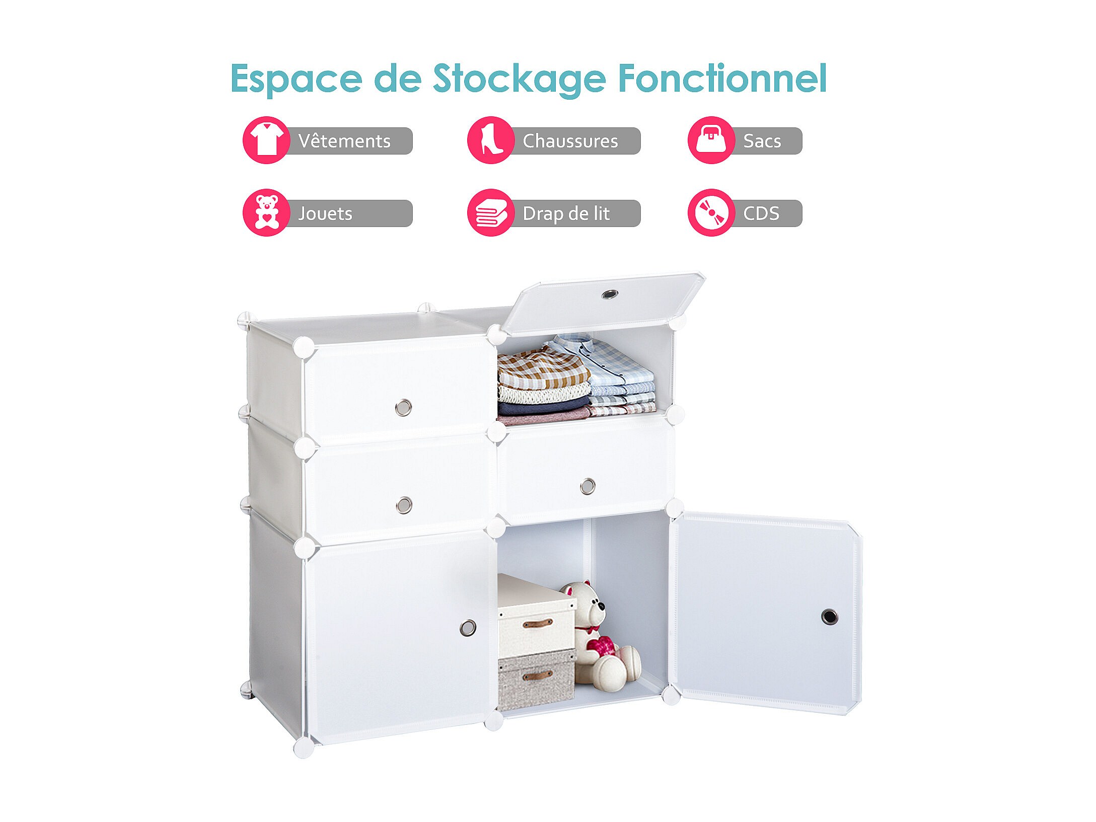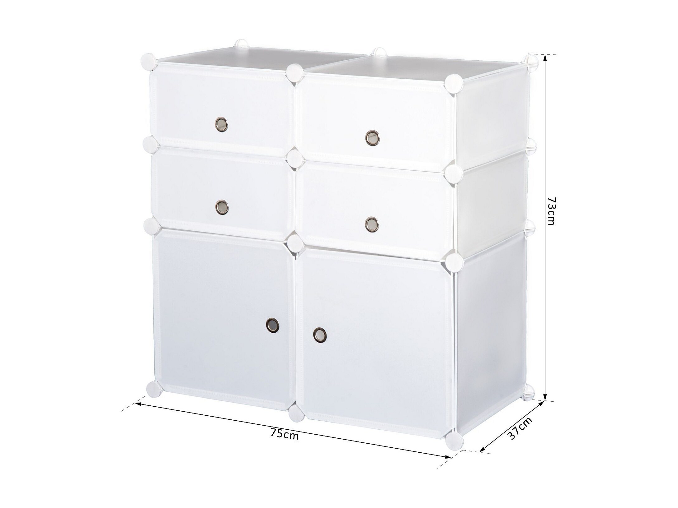 Armoire étagère à chaussures 3 niveaux 6 compartiments plastique + autocollants décoratifs 75L x 37l x 73H cm blanc