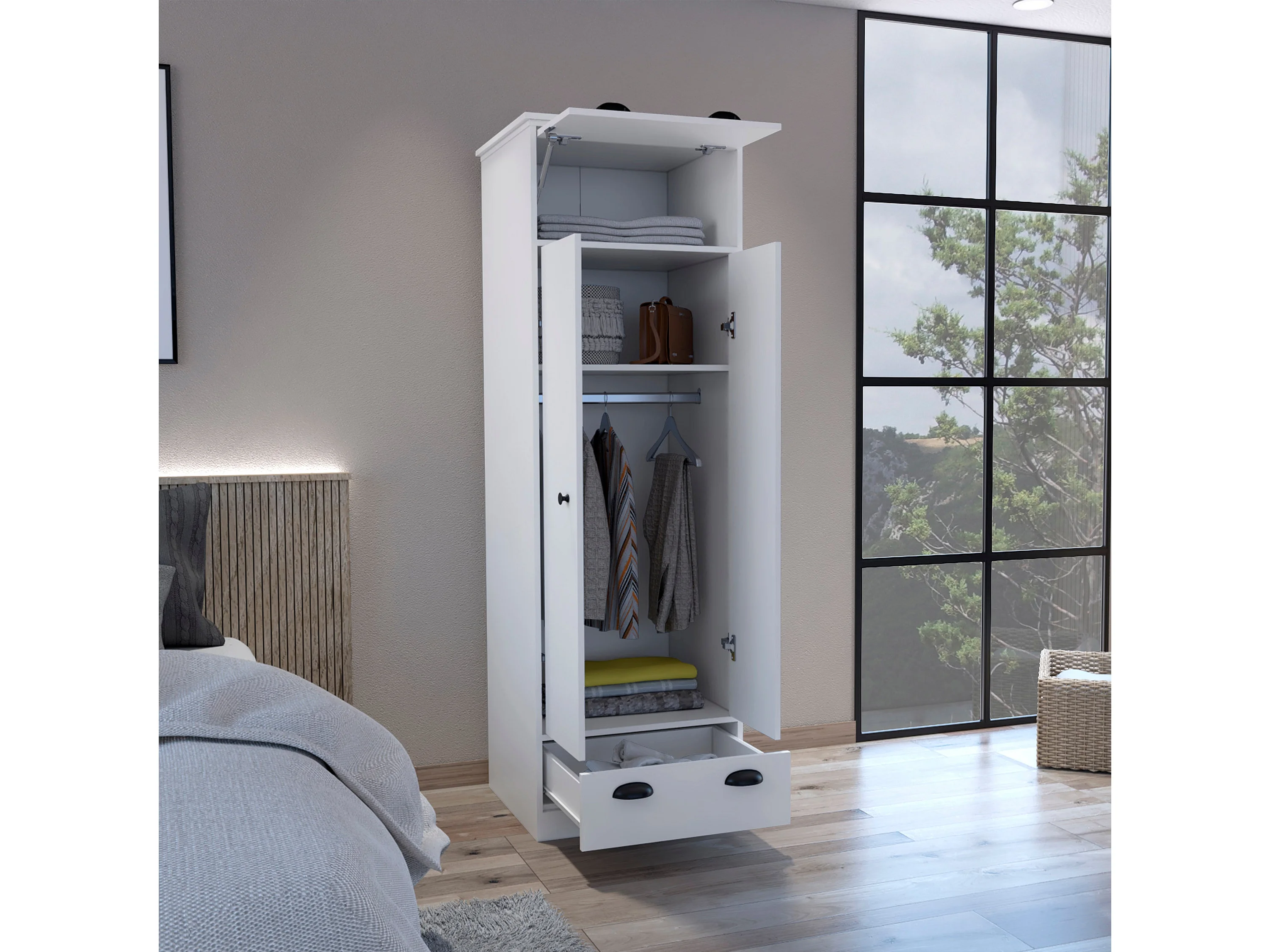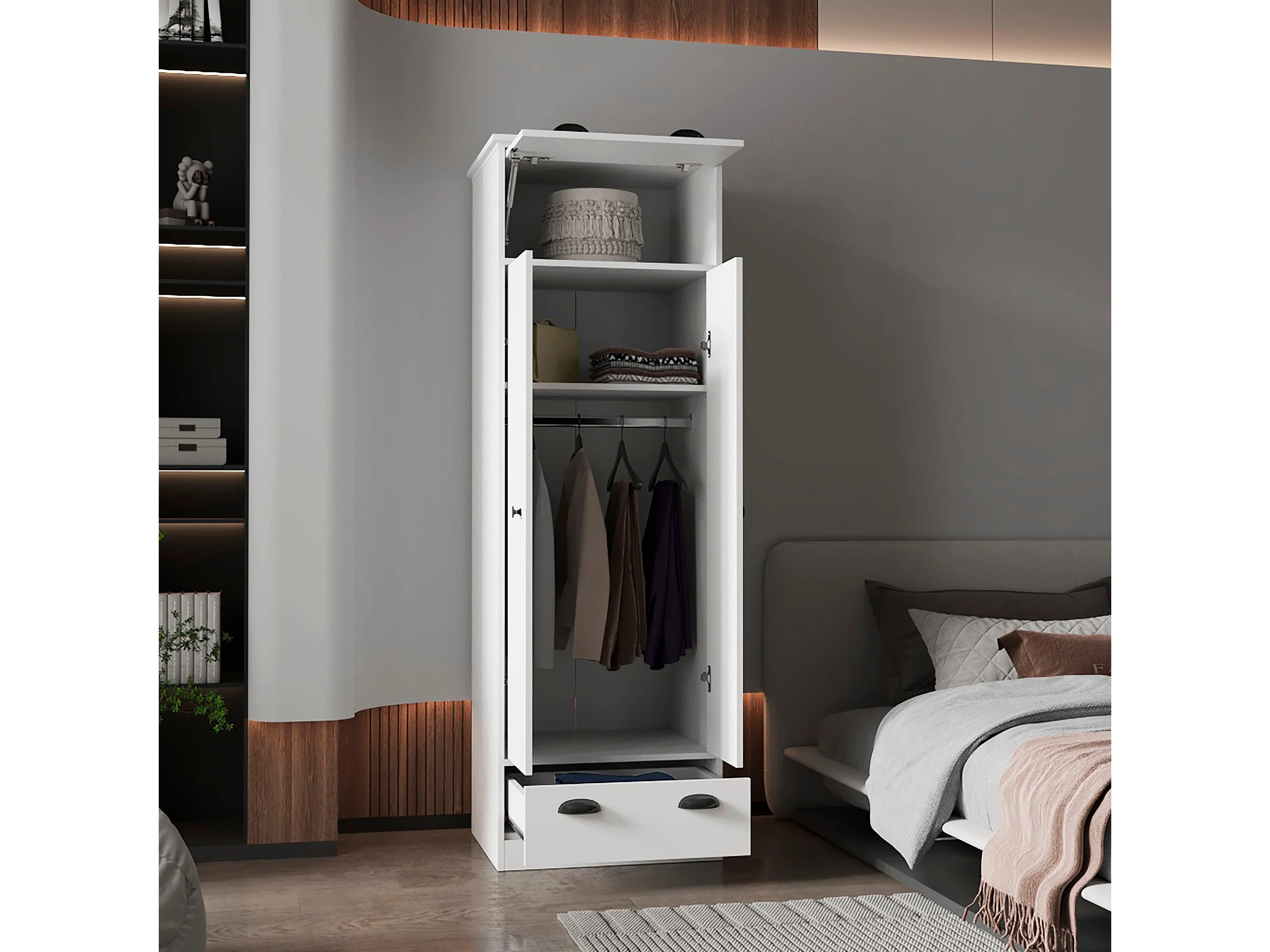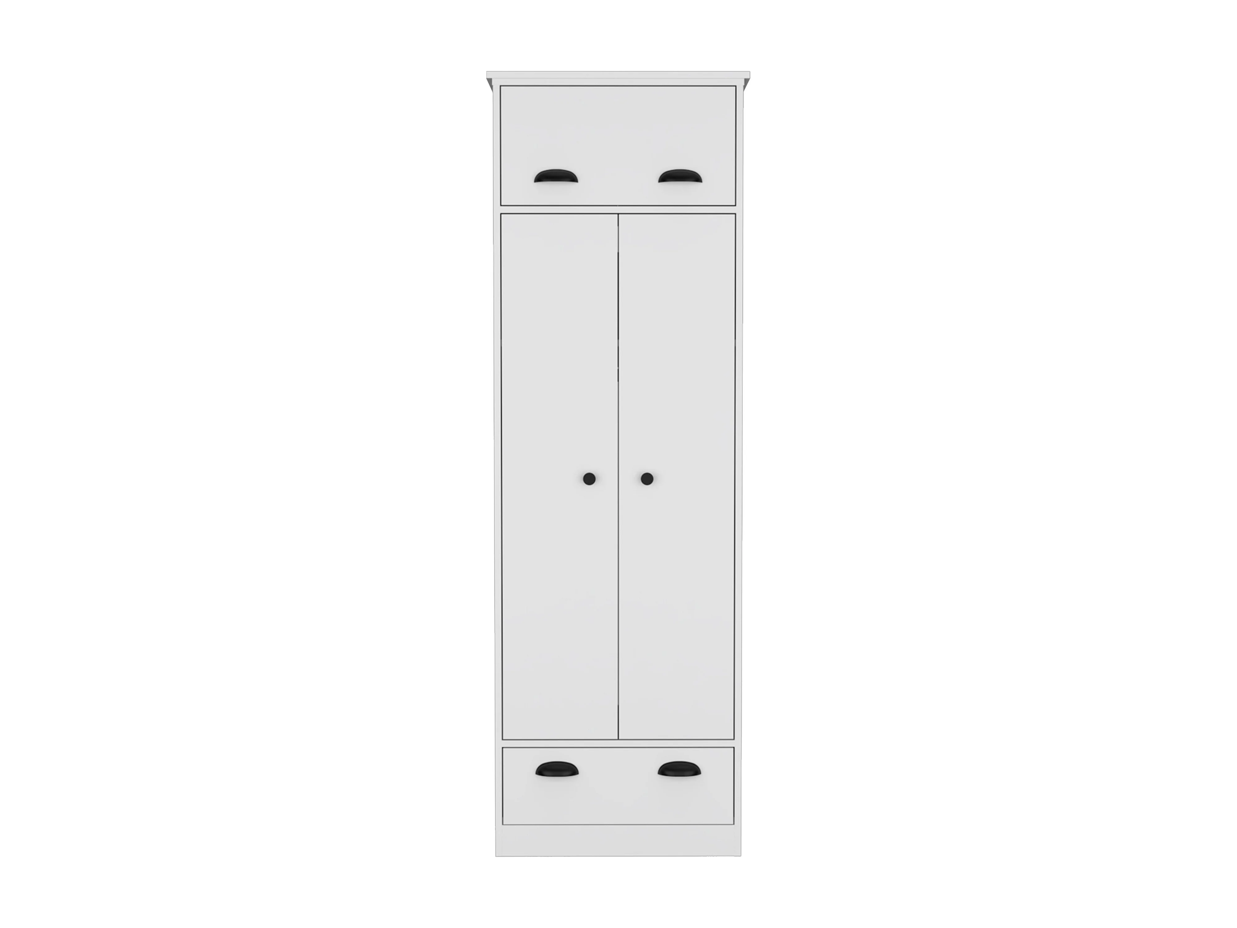 Armoire 2 portes en mélamine, avec tiroir à rail métallique, 178.99 cm X 59.20 cm X 50.01 cm , Blanc