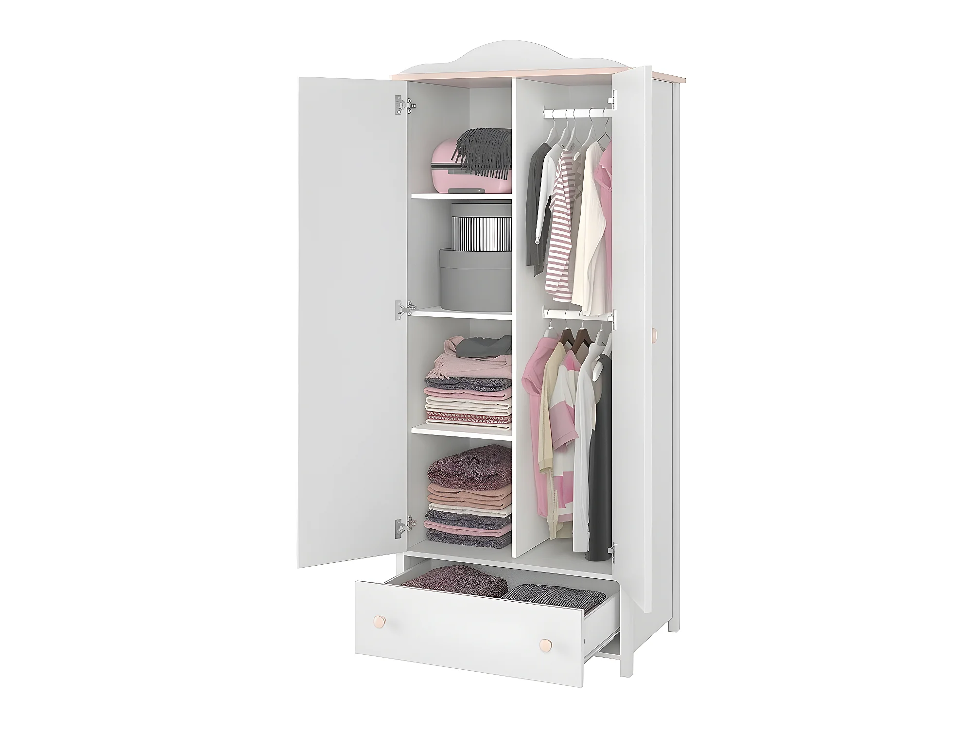 Armoire Elblive 111, Blanc|Rose clair, 184x85x52cm, Portes d'armoire: Avec des charnières
