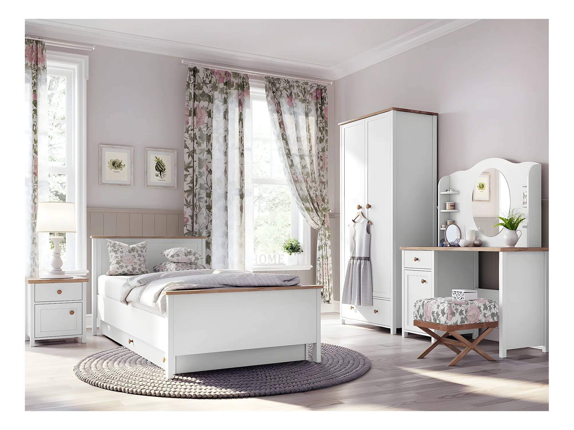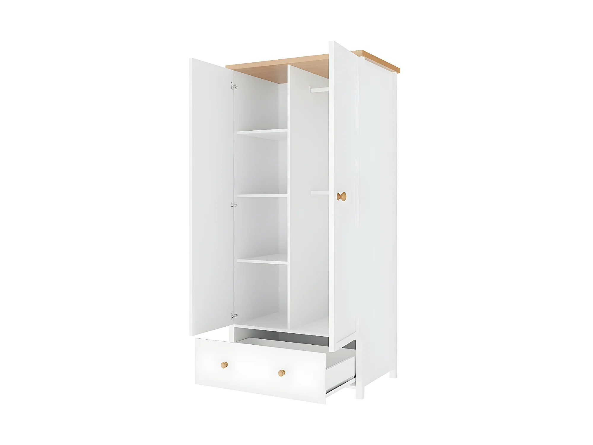 Armoire Romelbo 112, Blanc|Chêne, 187x85x52cm, Portes d'armoire: Avec des charnières