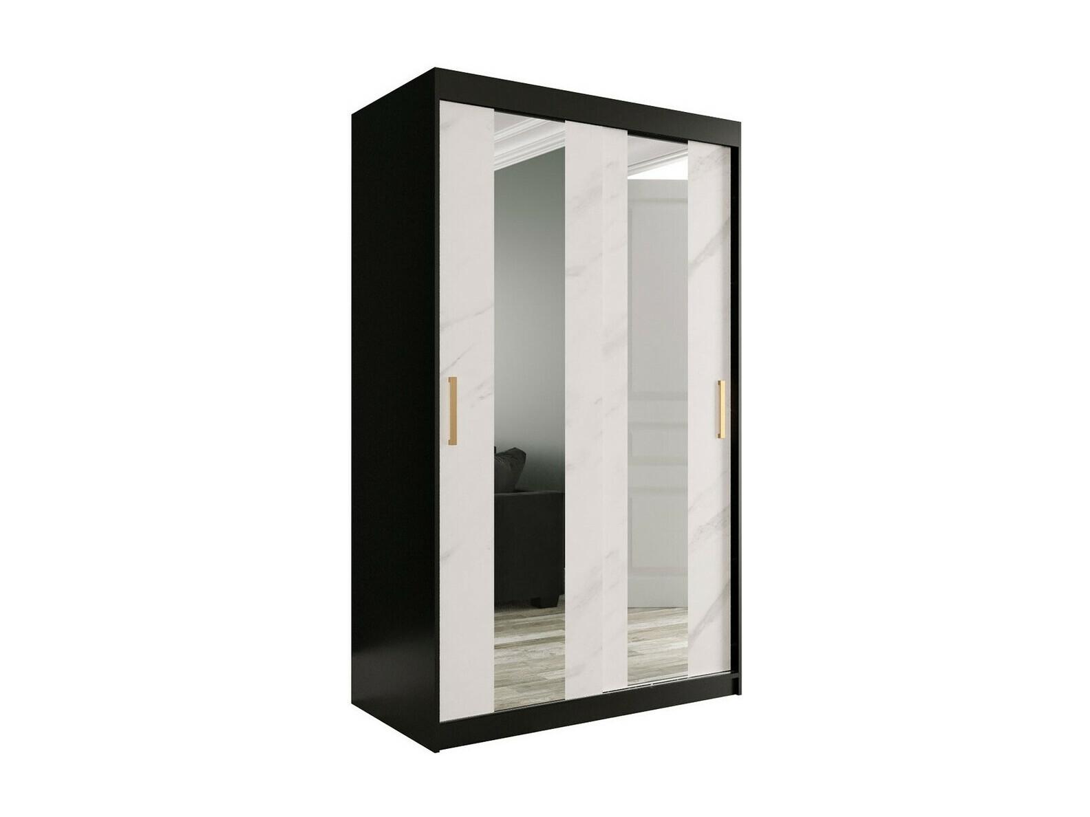 Armoire Hartford 241, Noir mat|Marbre blanc, 200x120x62cm, Portes d'armoire: Coulissantes