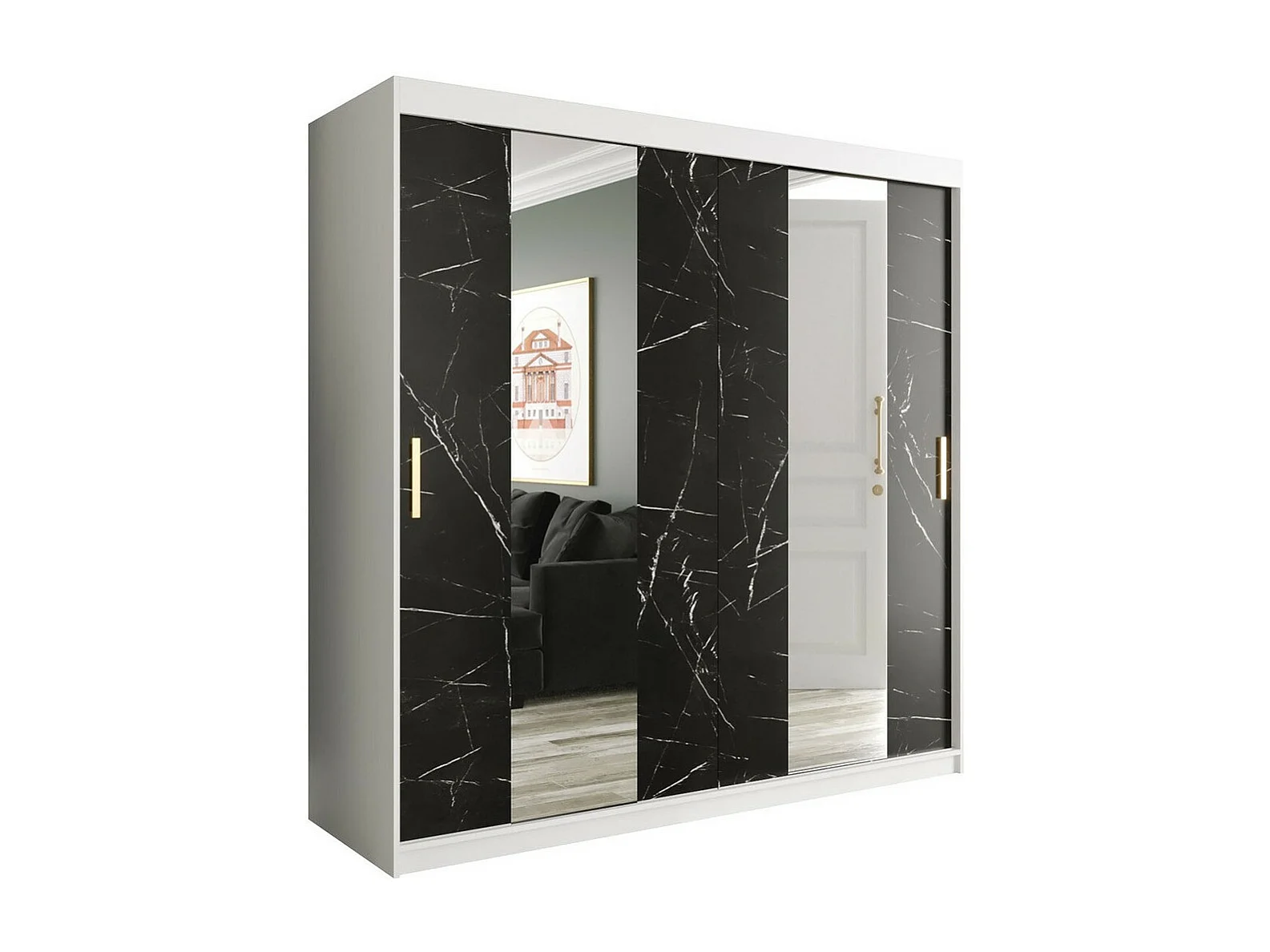 Armoire Hartford 244, Marbre noir|Mat blanc, 200x200x62cm, Portes d'armoire: Coulissantes