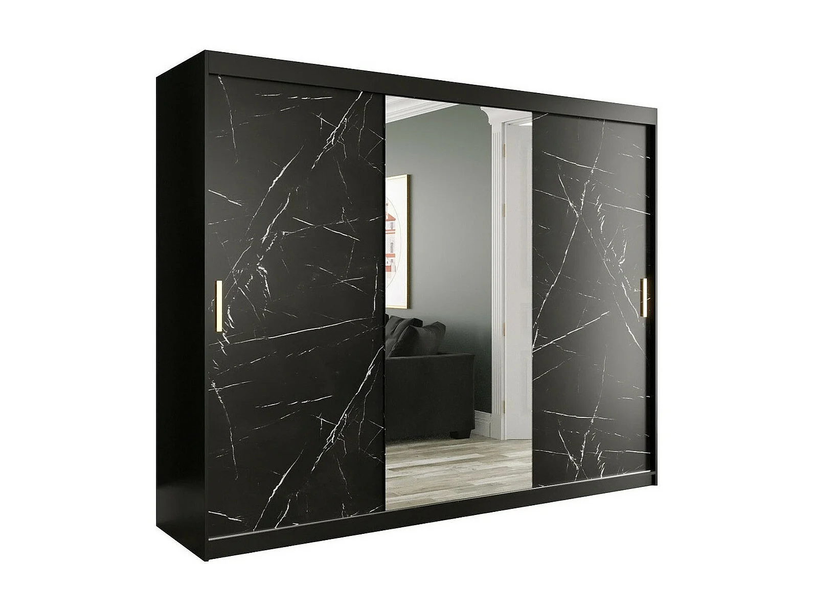 Armoire Hartford 257, Noir mat|Marbre noir, 200x250x62cm, Portes d'armoire: Coulissantes