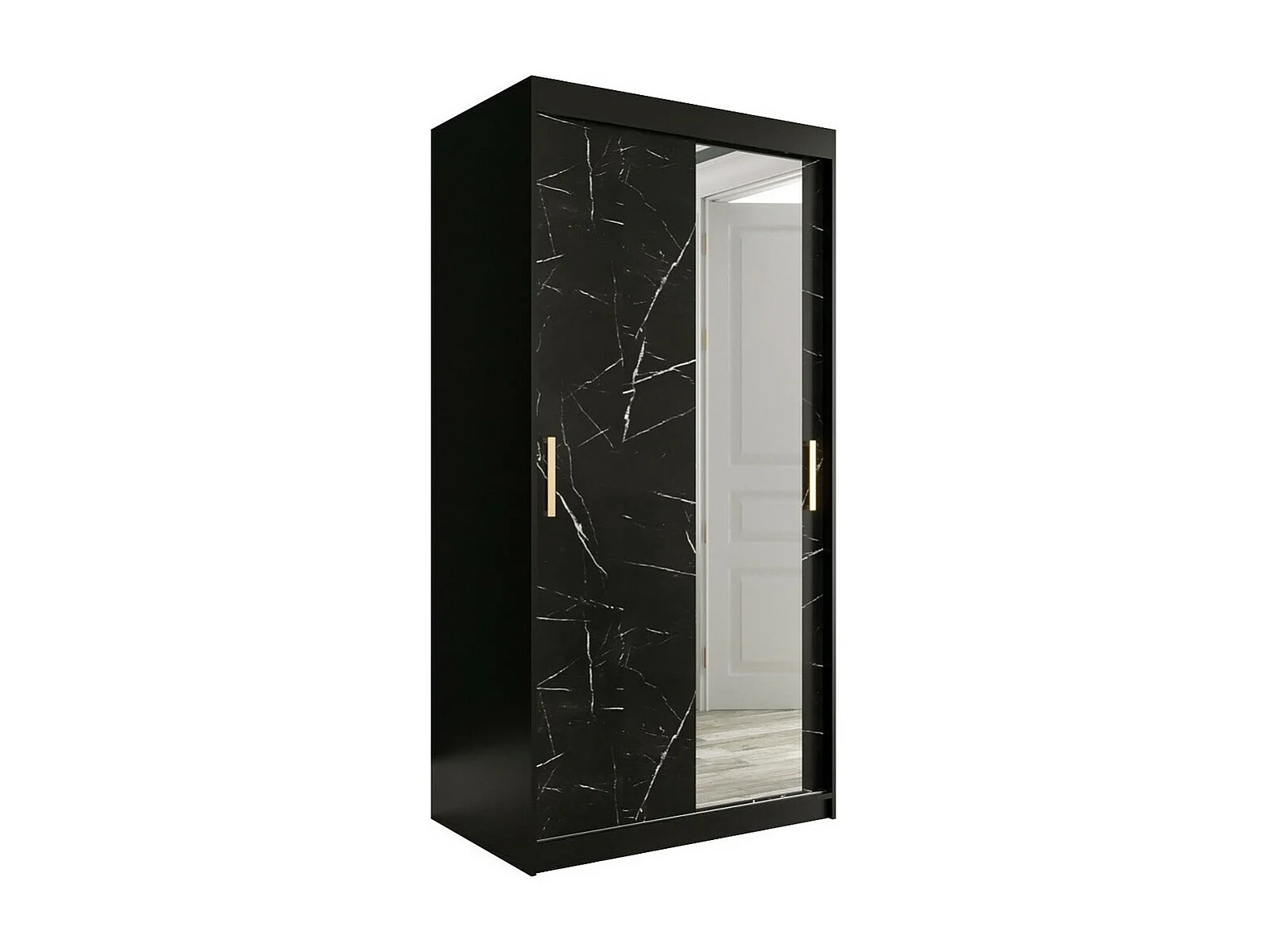 Armoire Hartford 258, Noir mat|Marbre noir, 200x100x62cm, Portes d'armoire: Coulissantes