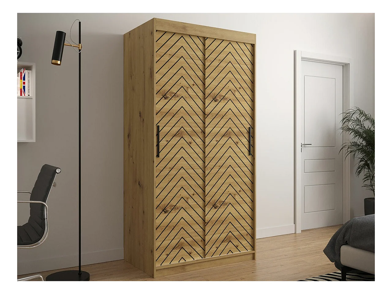 Armoire Hartford 306, Noir|Chêne Artisan, 200x100x62cm, Portes d'armoire: Coulissantes
