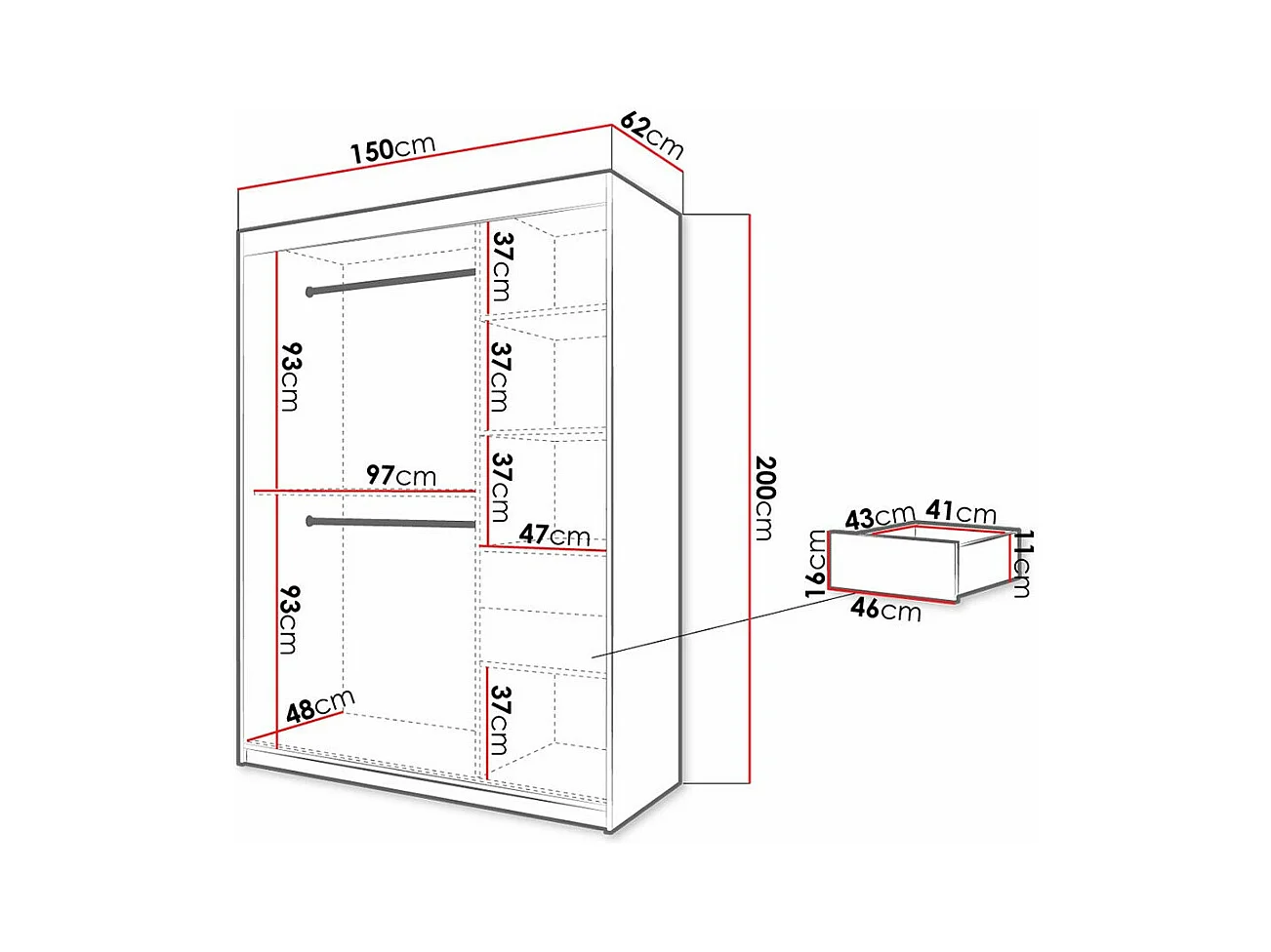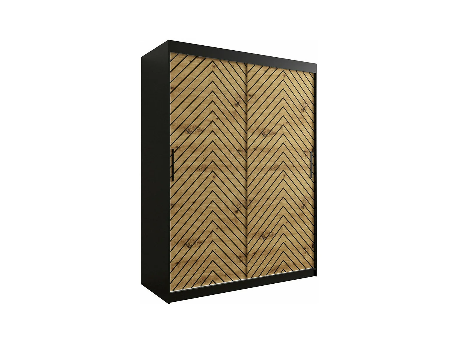 Armoire Hartford 310, Chêne Artisan|Noir, 200x150x62cm, Portes d'armoire: Coulissantes