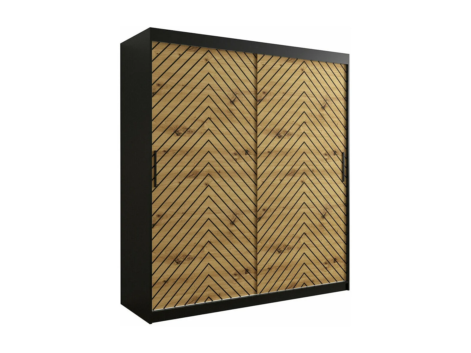 Armoire Hartford 312, Noir|Chêne Artisan, 200x180x62cm, Portes d'armoire: Coulissantes