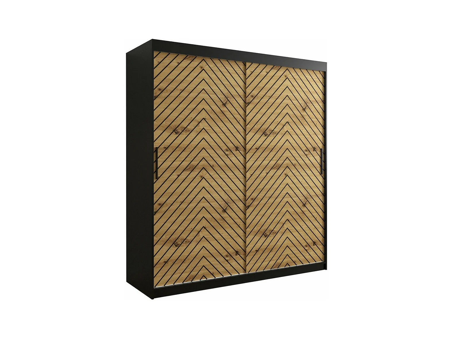 Armoire Hartford 312, Chêne Artisan|Noir, 200x180x62cm, Portes d'armoire: Coulissantes