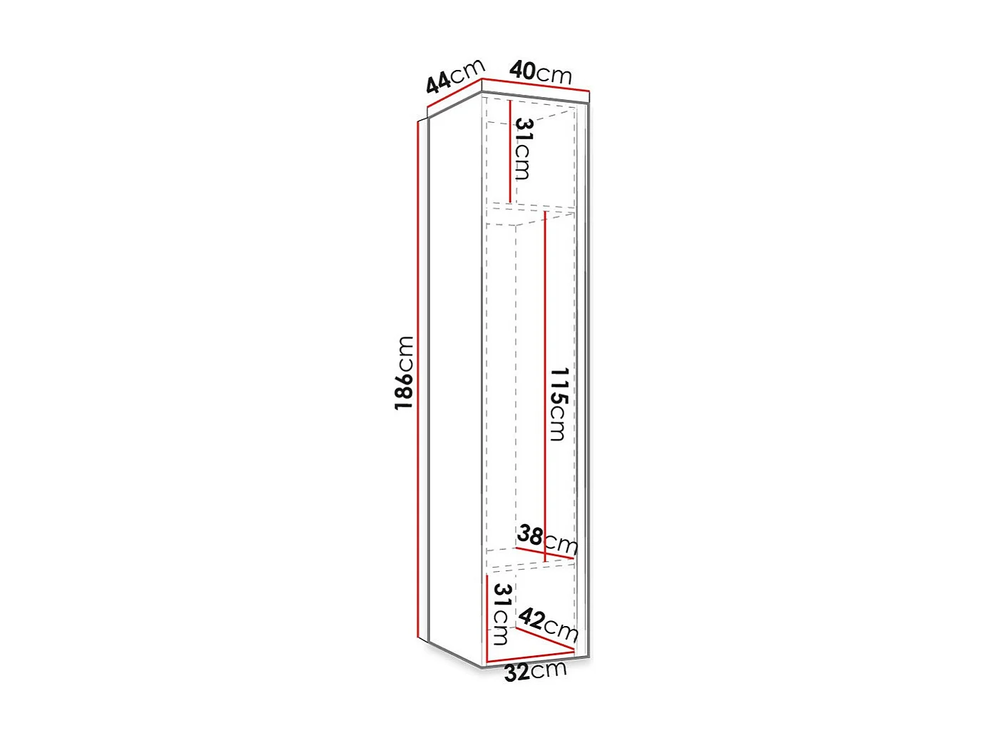 Armoire Hartford 369, Noir|Chêne Artisan, 186x40x44cm, Nombre d'étagères: 2