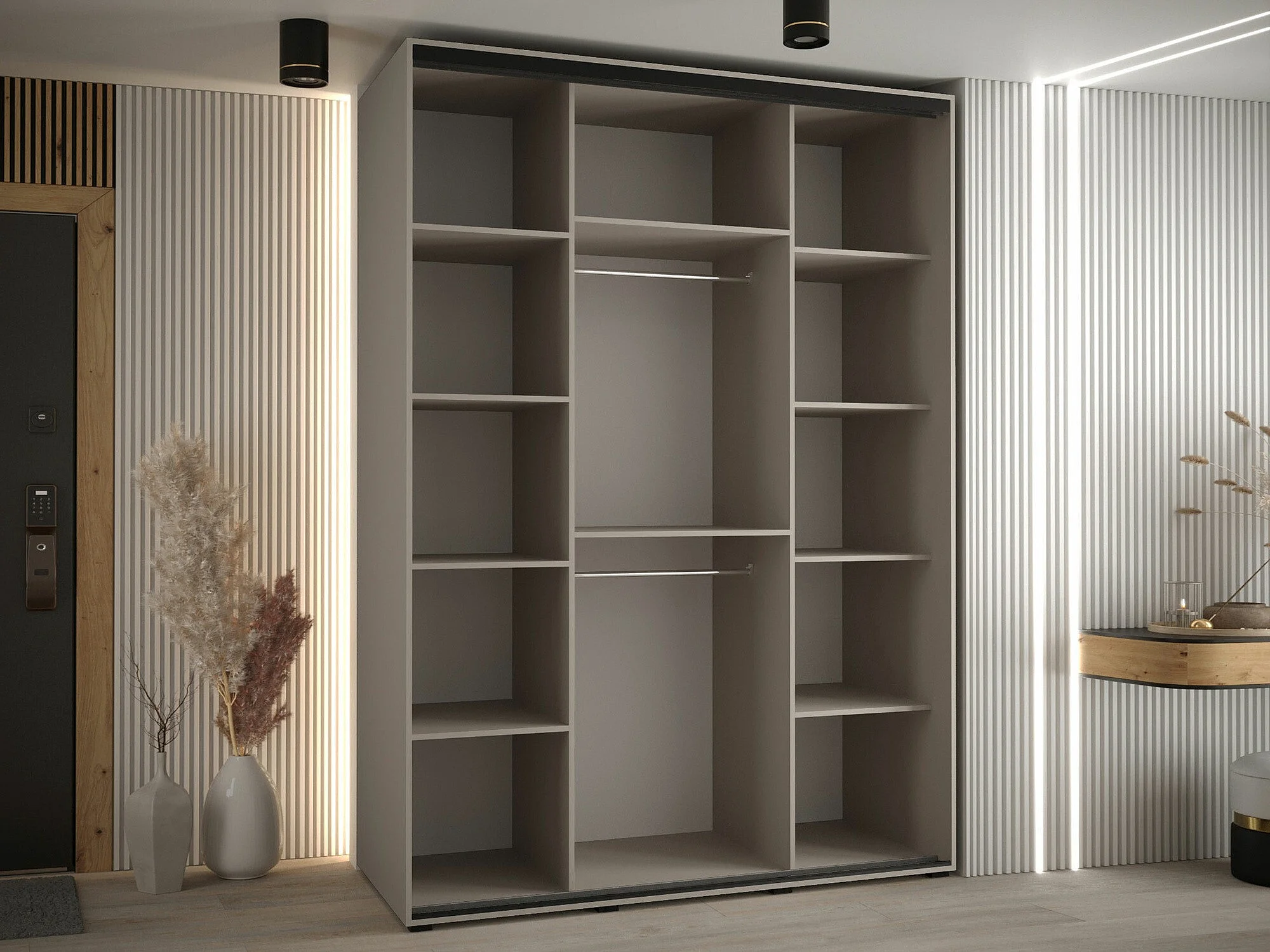 Armoire Hartford 493, Noir|Cachemire, 235x180x60cm, Portes d'armoire: Coulissantes