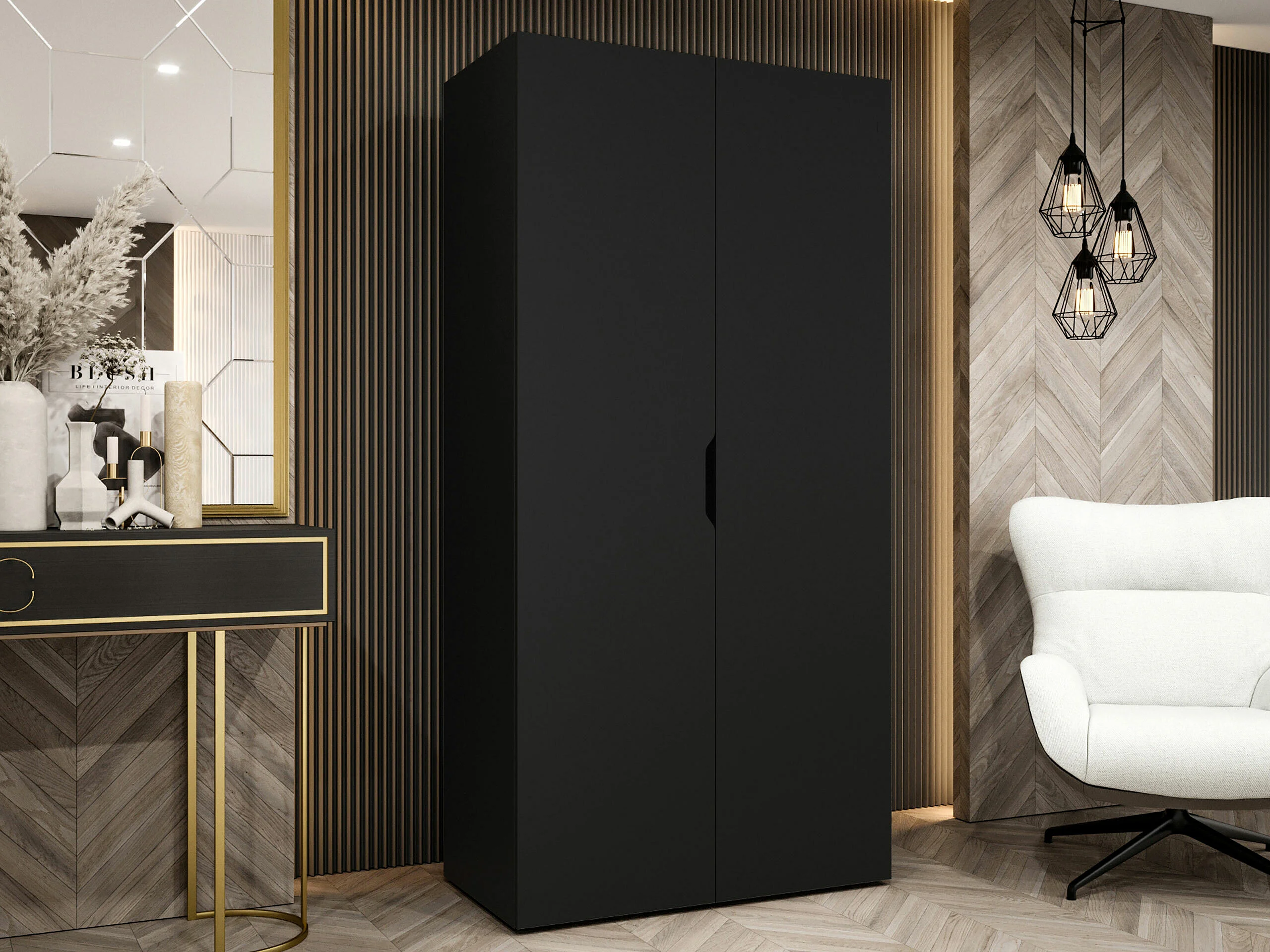 Armoire Hartford 509, Noir, 202x100x50cm, Portes d'armoire: Avec des charnières