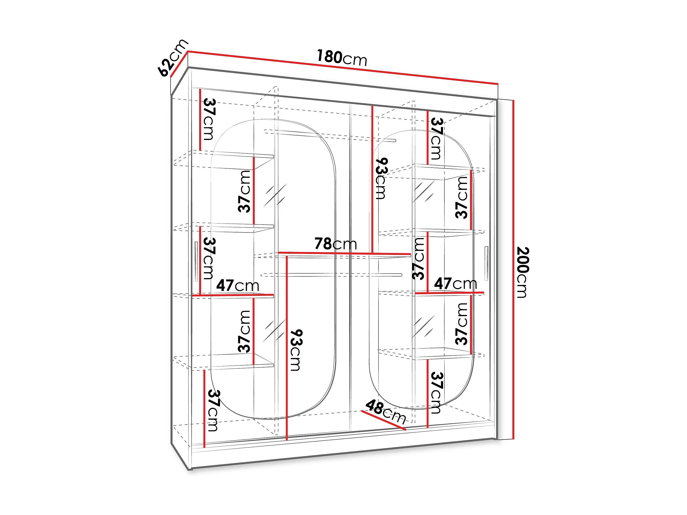 Armoire Hartford 520, Noir, 200x180x62cm, Portes d'armoire: Coulissantes